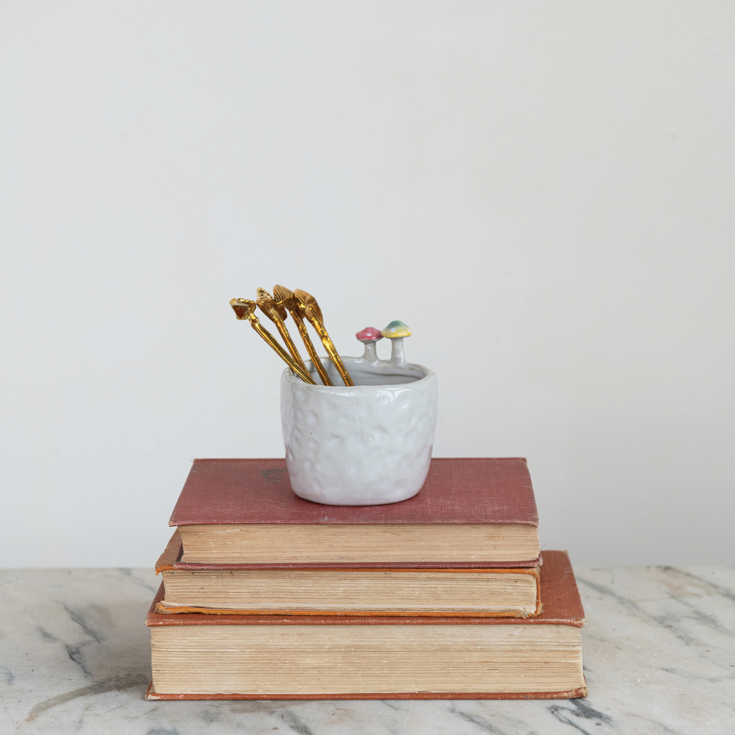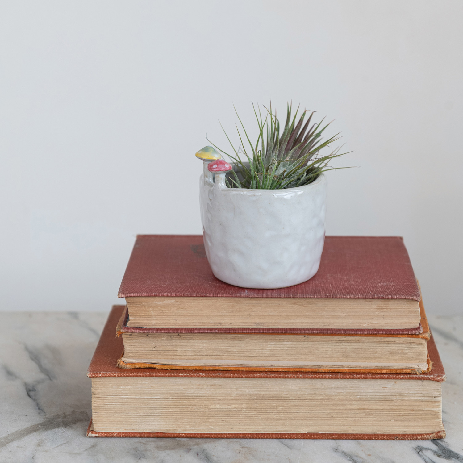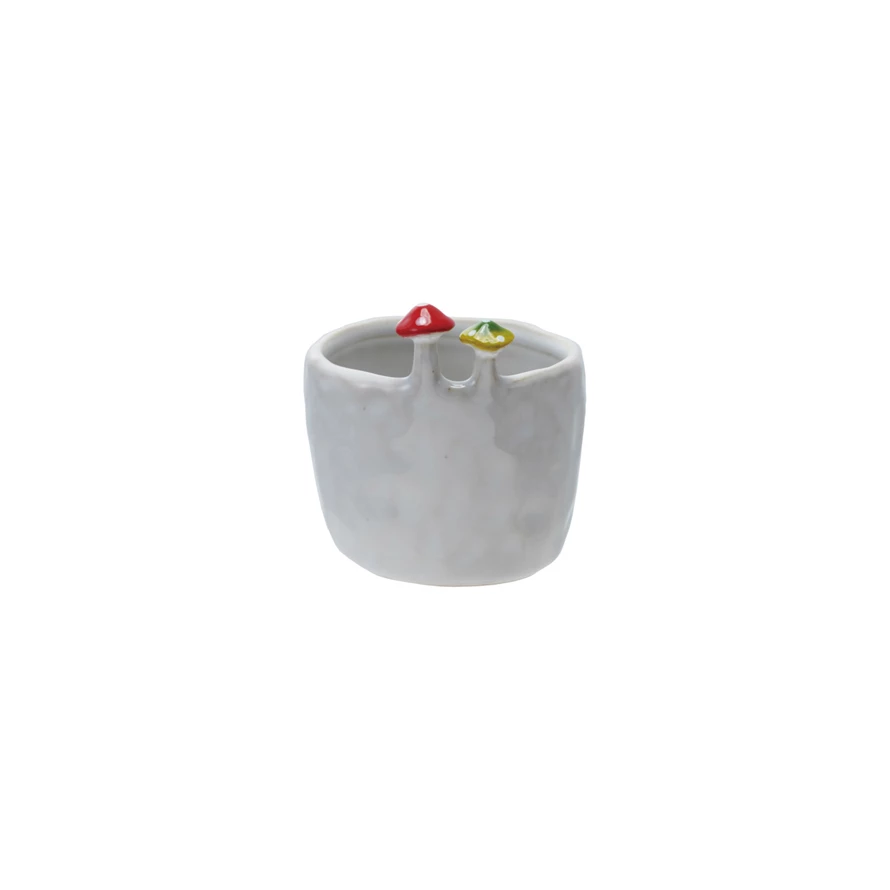 Stoneware Cup/Planter with Mushrooms on Rim (Holds 3" Pot)