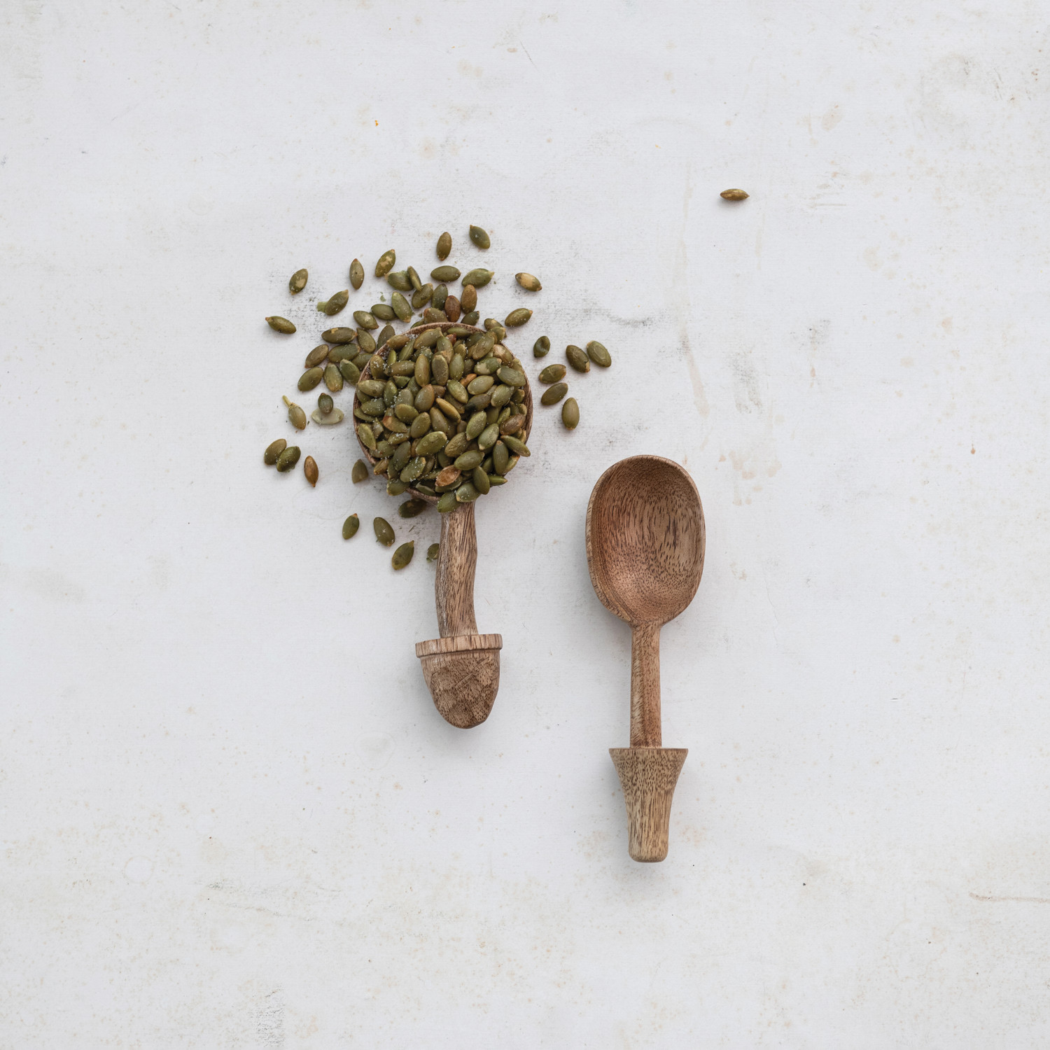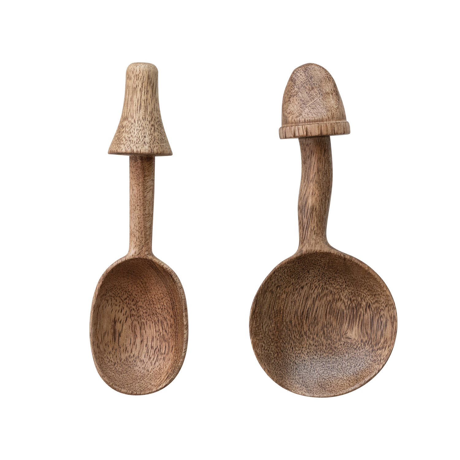 Carved Mango Wood Spoon with Mushroom Handle, Natural, 2 Styles