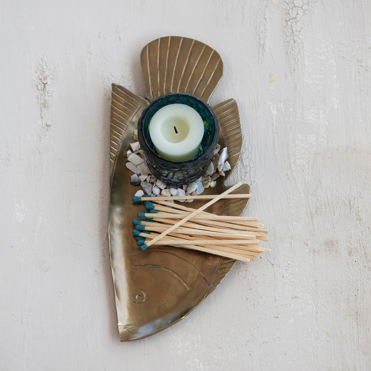 Metal Fish Shaped Tray, Antique Gold Finish