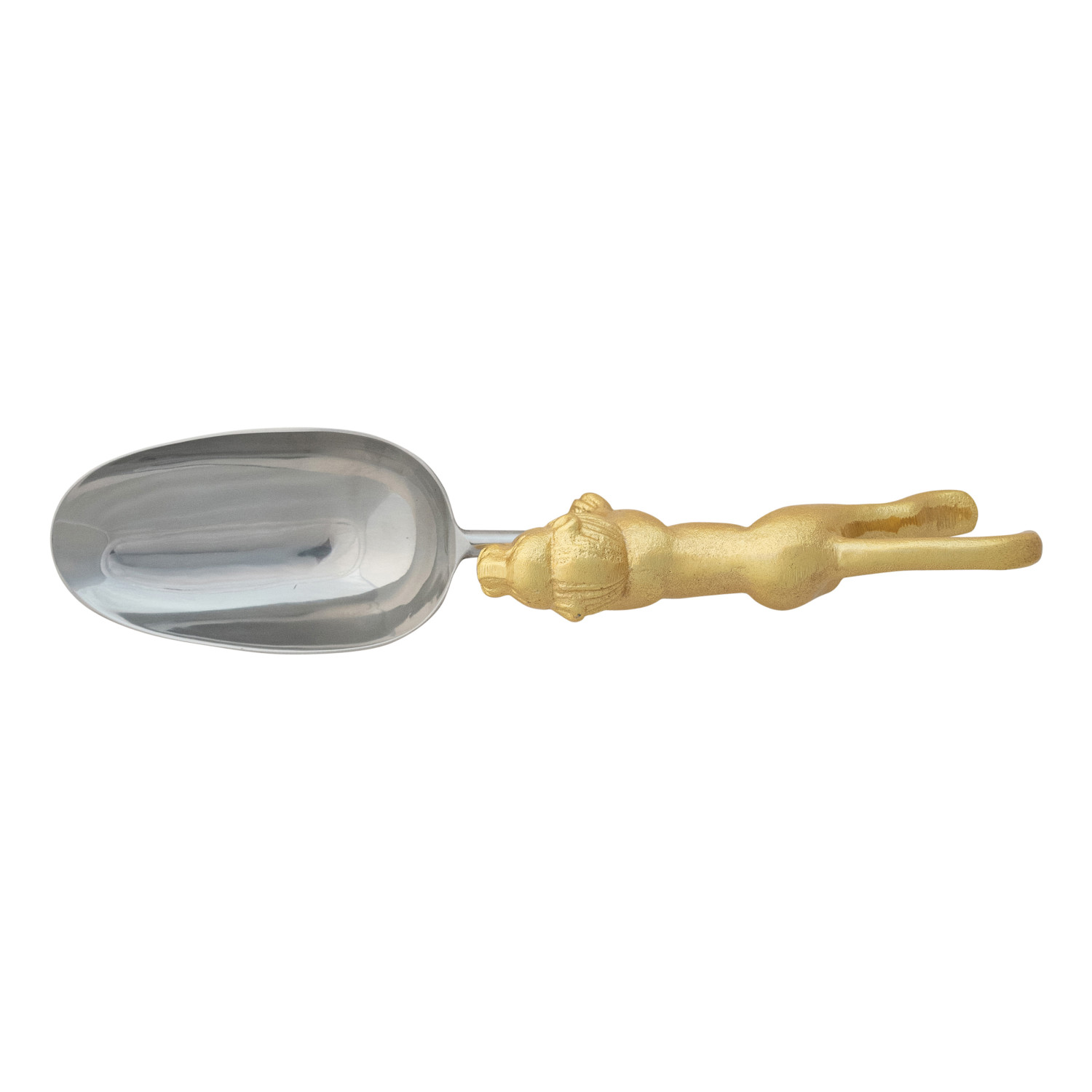 Catalog Name: 10-1/2"L Stainless Steel & Cast Aluminum Scoop w/ Gold Finish Lion Shaped Handle