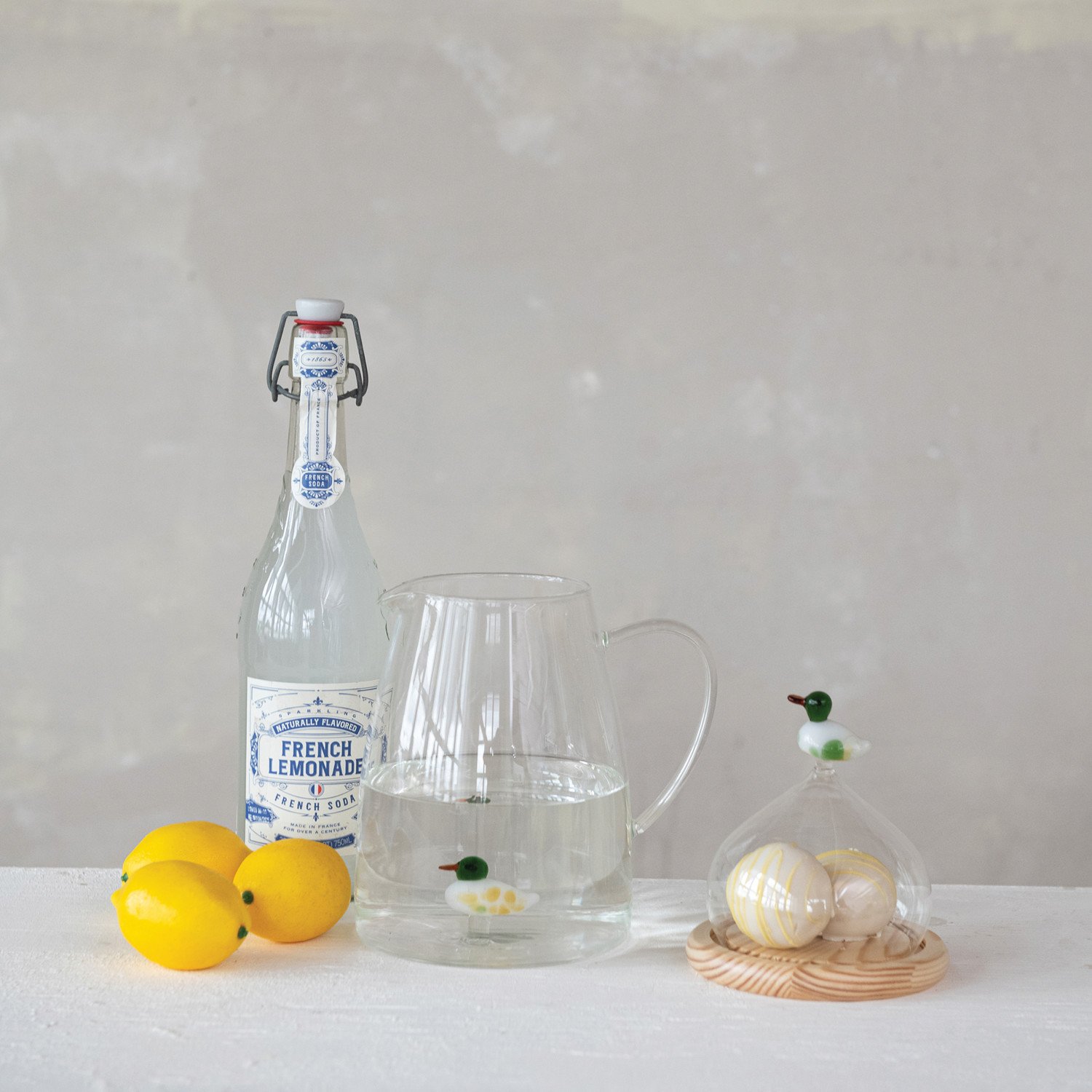 Glass Cloche with Wood Base & Hand-Blown Duck Finial, Set of 2