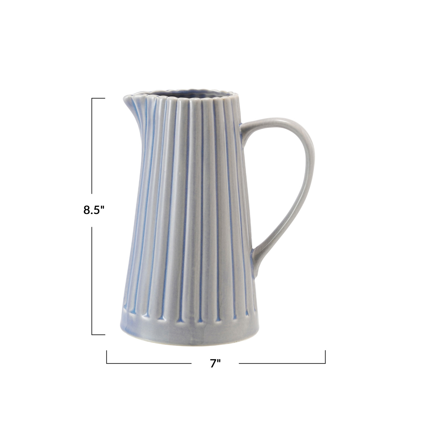 40 oz. Stoneware Ribbed Pitcher, Reactive Glaze, Light Blue (Each One Will Vary)