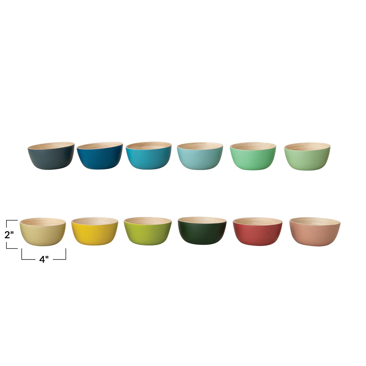 Bamboo Bowl w/ Natural Finish Inside, 12 Matte Colors
