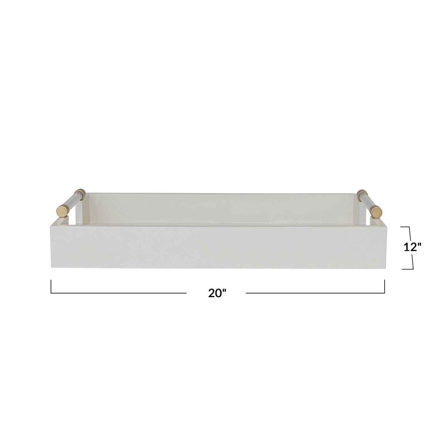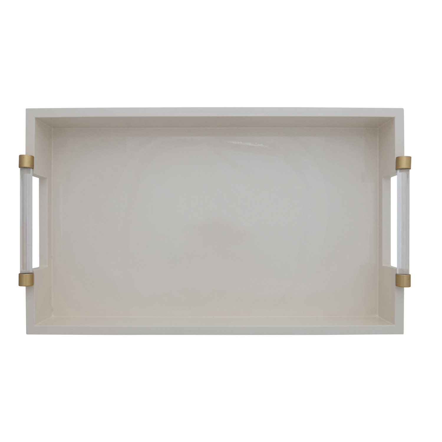 Catalog Name: 20"L x 12"W MDF Lacquered Tray w/ Acrylic & Metal Handles, Cream Color & Gold Finish