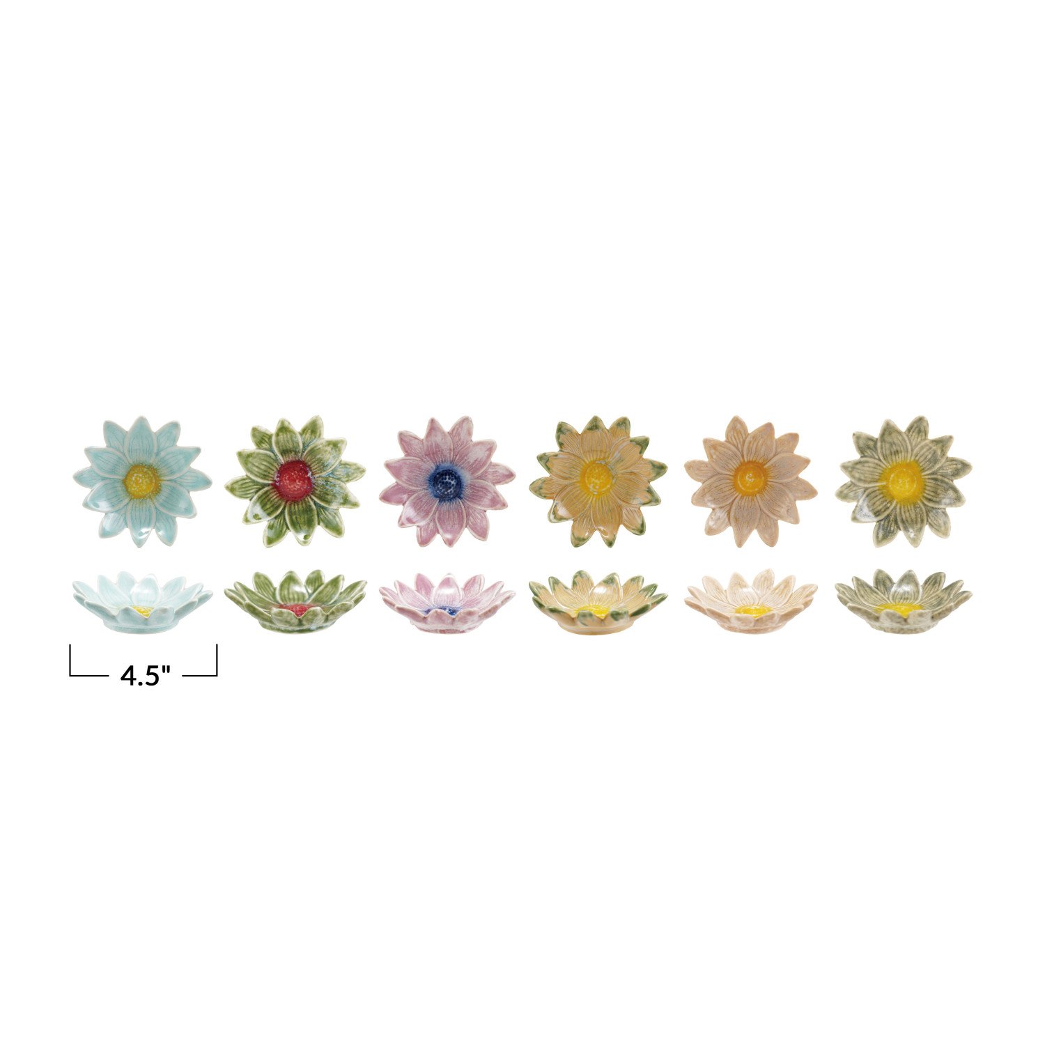 Stoneware Flower Shaped Dish, Reactive Glaze, 6 Colors (Each One Will Vary)
