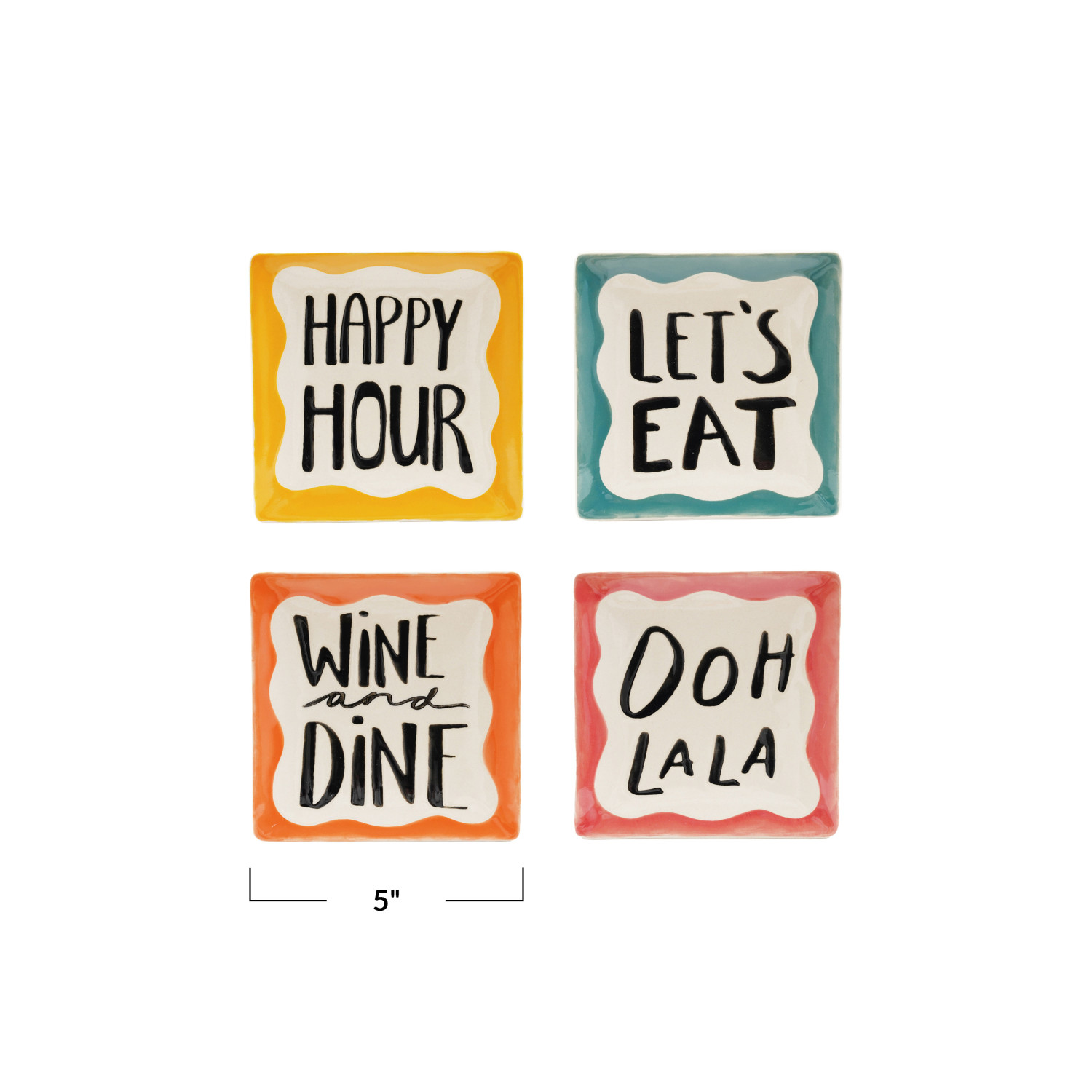 Catalog Name: 5" Square Stoneware Dish w/ Wax Relief Culinary Saying, Multi Color, 4 Styles ©
