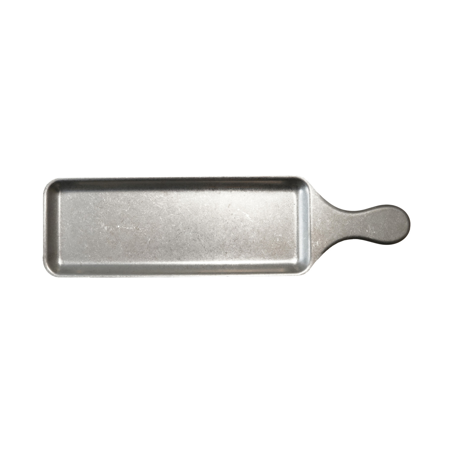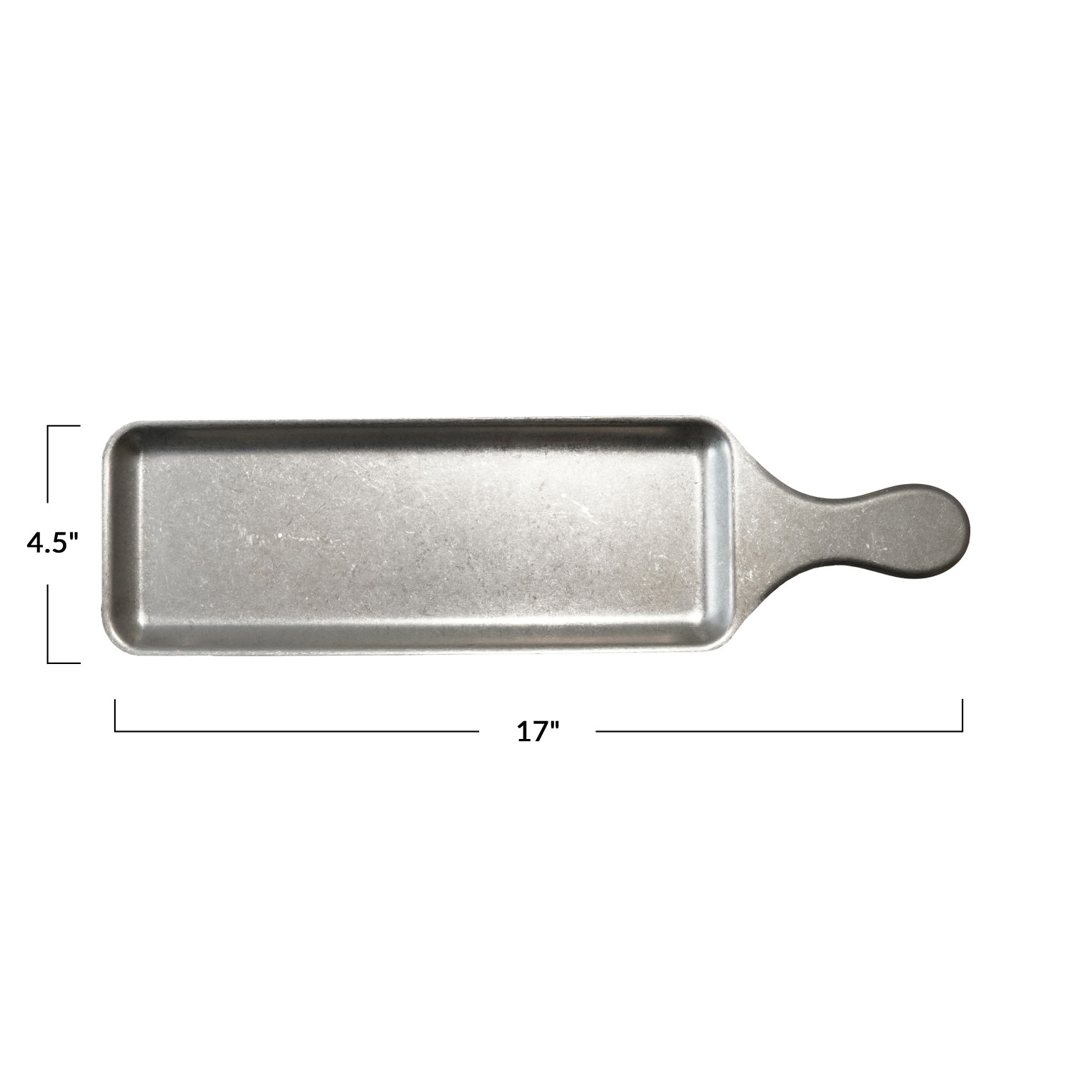 Catalog Name: 17"L x 4-1/2"W Stainless Steel Serving Tray w/ Handle, Brushed Pewter Finish