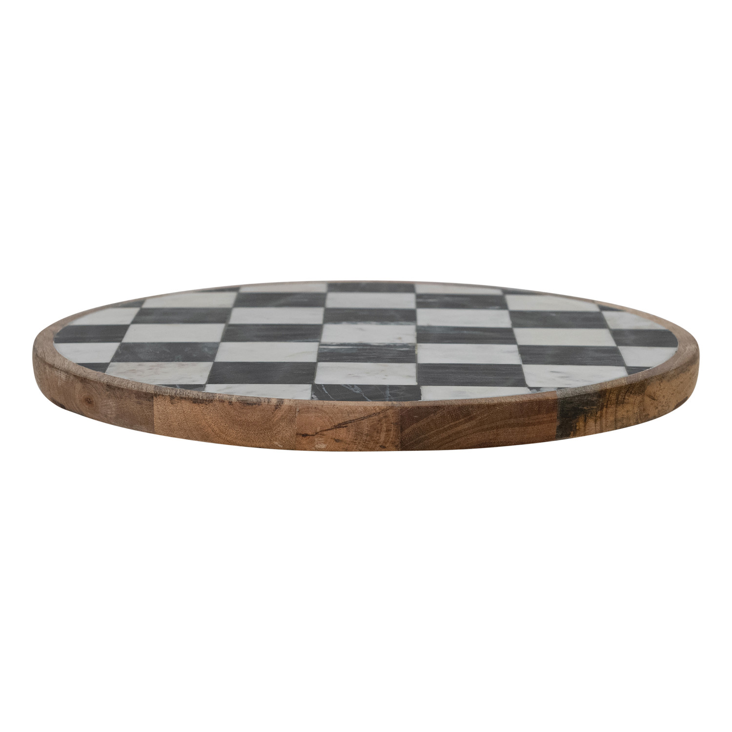 Catalog Name: 16" Round x 1-3/4"H Mango Wood & Marble Check Lazy Susan, White, Black & Natural (Each One Will Vary)