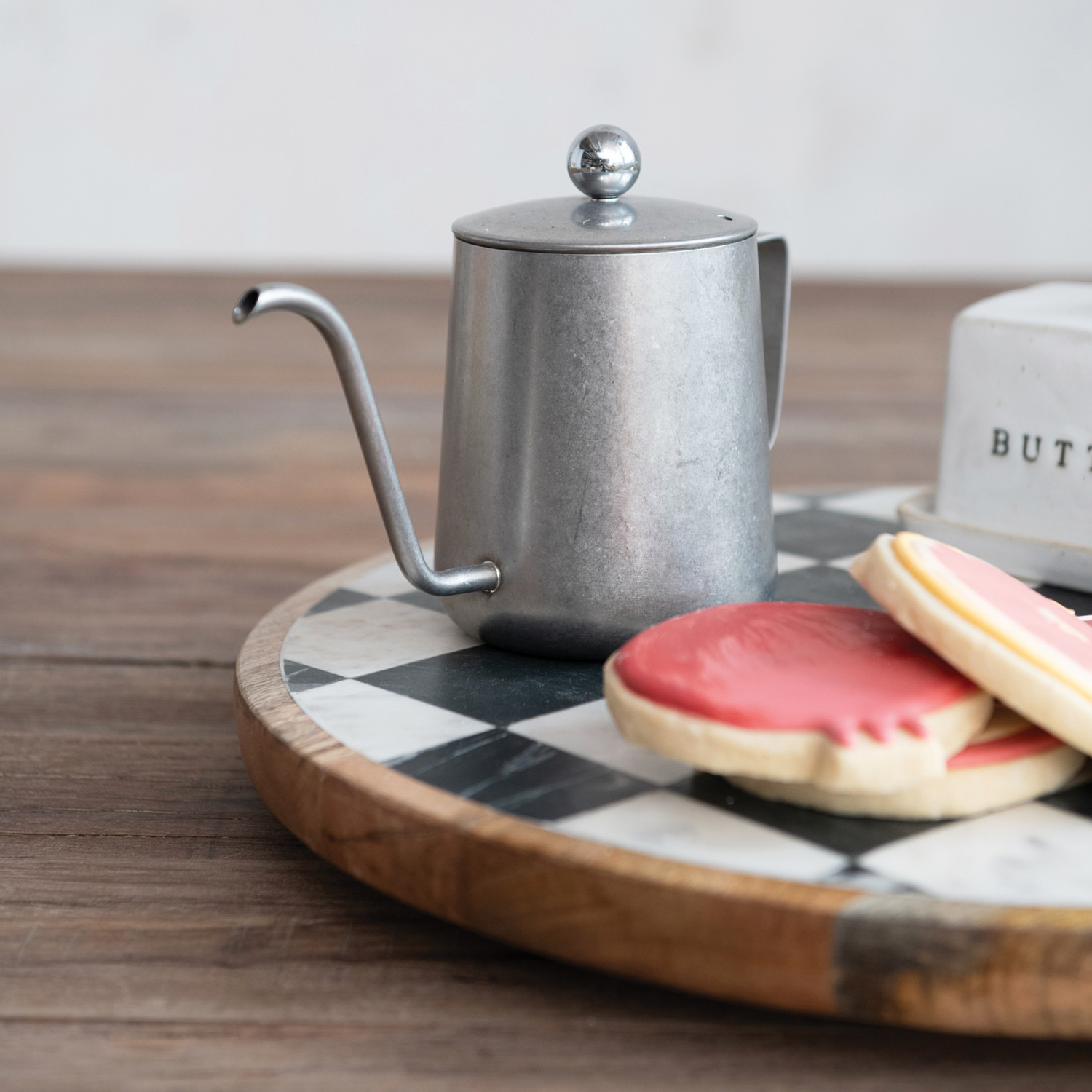 Mango Wood & Marble Check Lazy Susan, White, Black & Natural (Each One Will Vary)