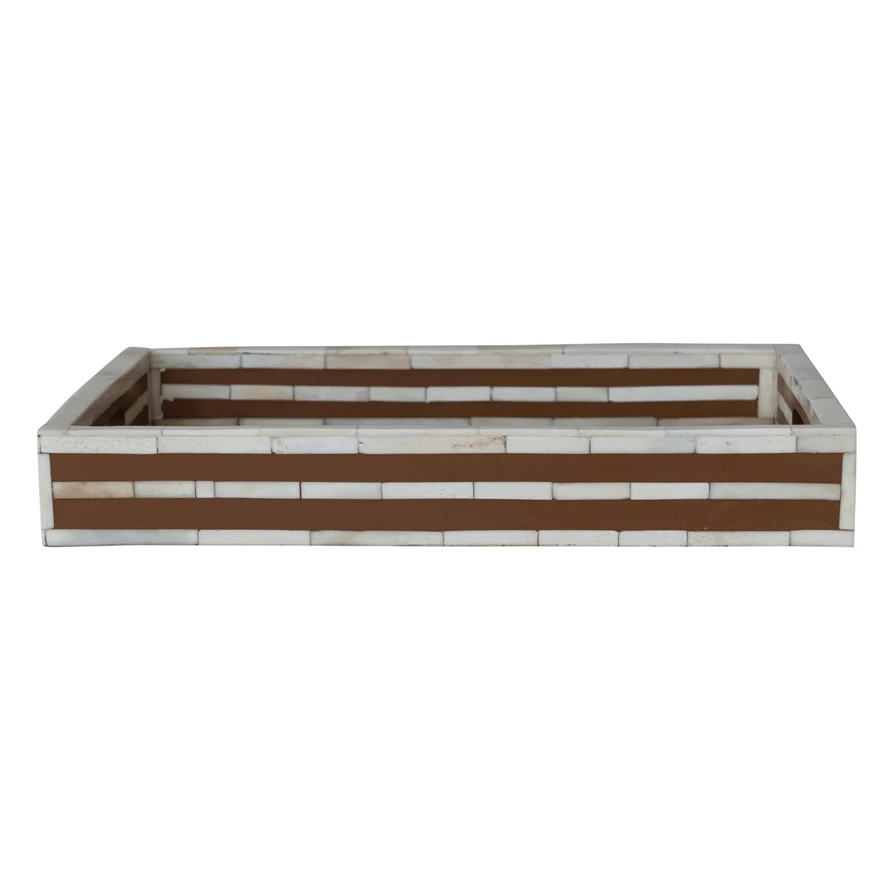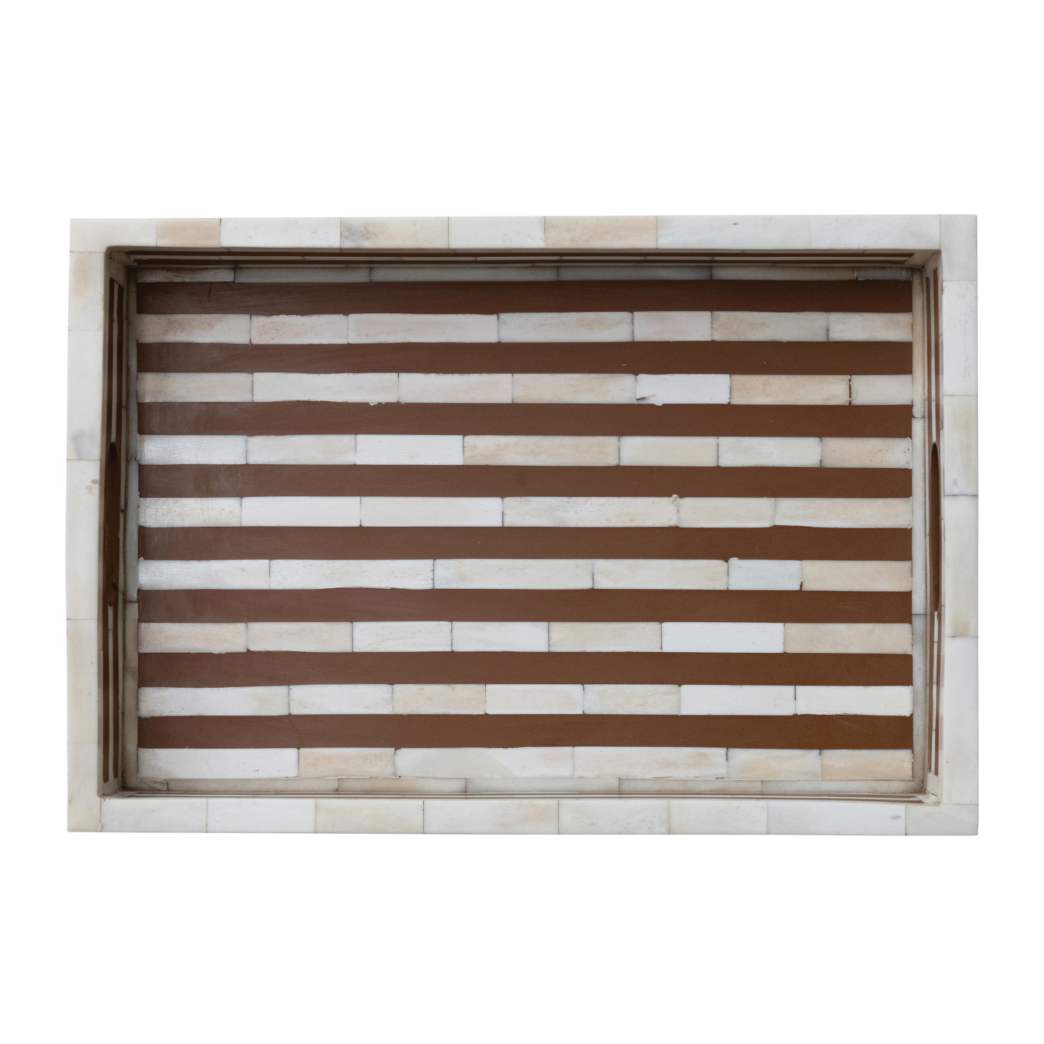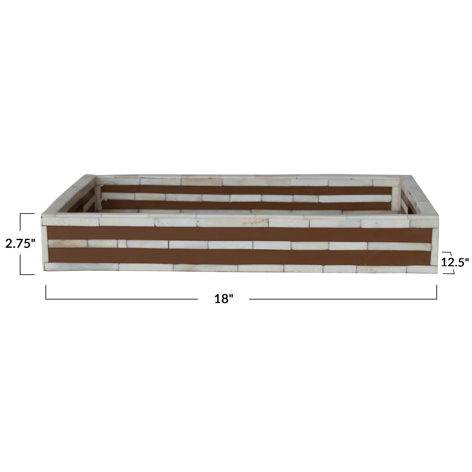 Catalog Name: 18"L x 12-1/2"W x 2-3/4"H Bone, Resin & MDF Inlaid Tray w/ Handles, Brown & Cream Color (Each One Will Vary)