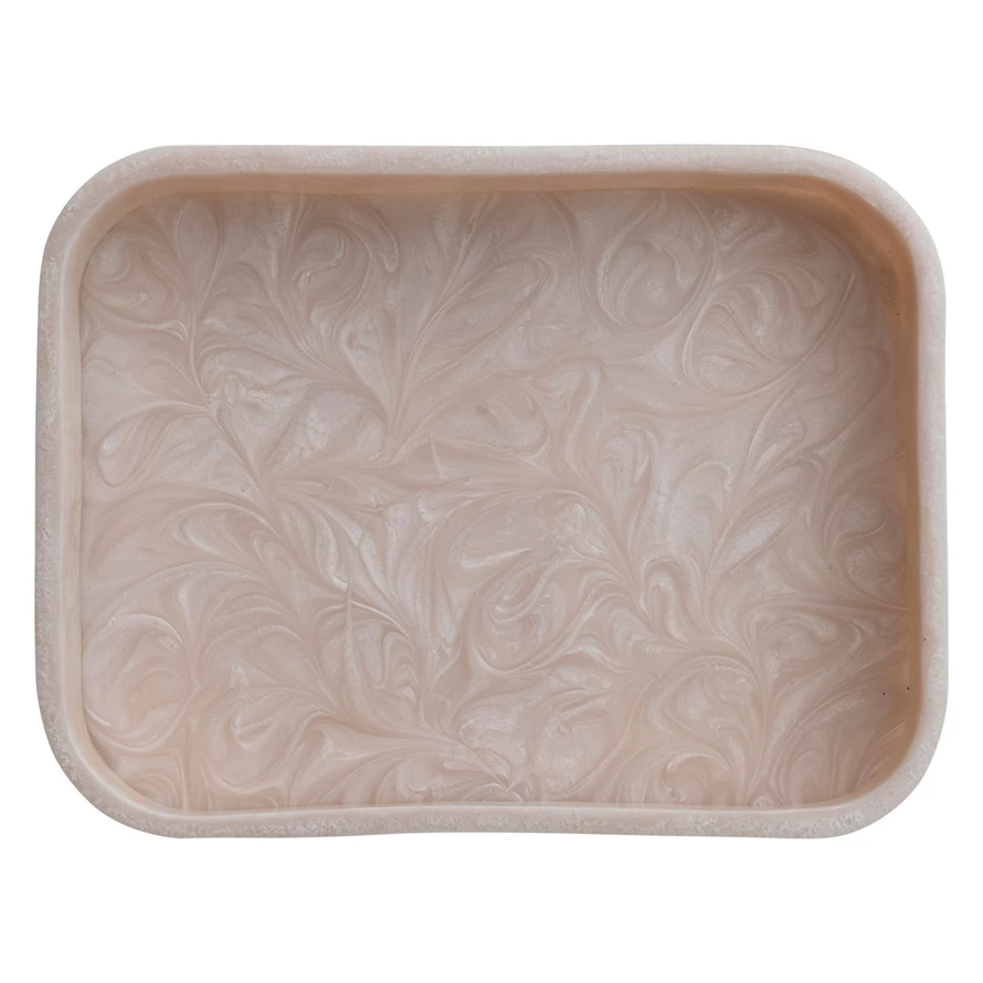 Marbled Resin Tray, Pearlized Finish, Pink (Each One Will Vary)