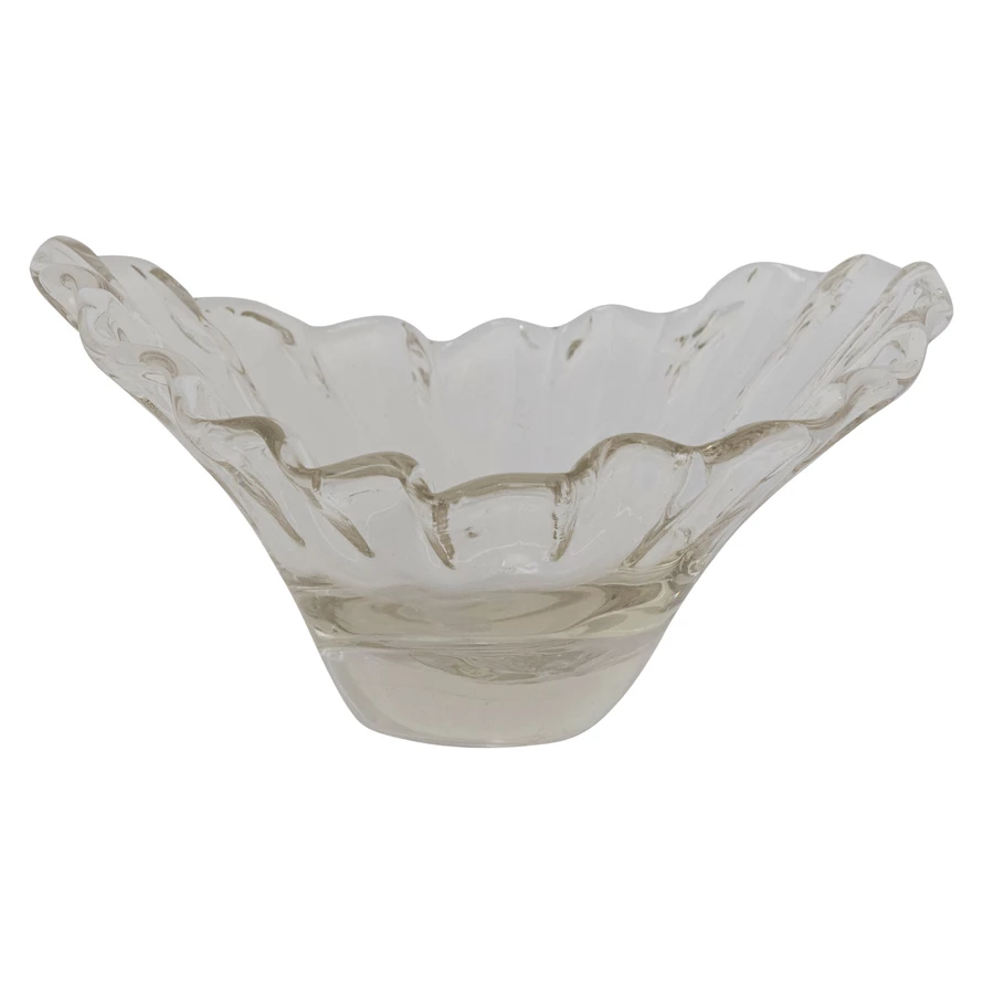 Hand-Blown Glass Pleated Organic Shaped Bowl (Each One Will Vary)