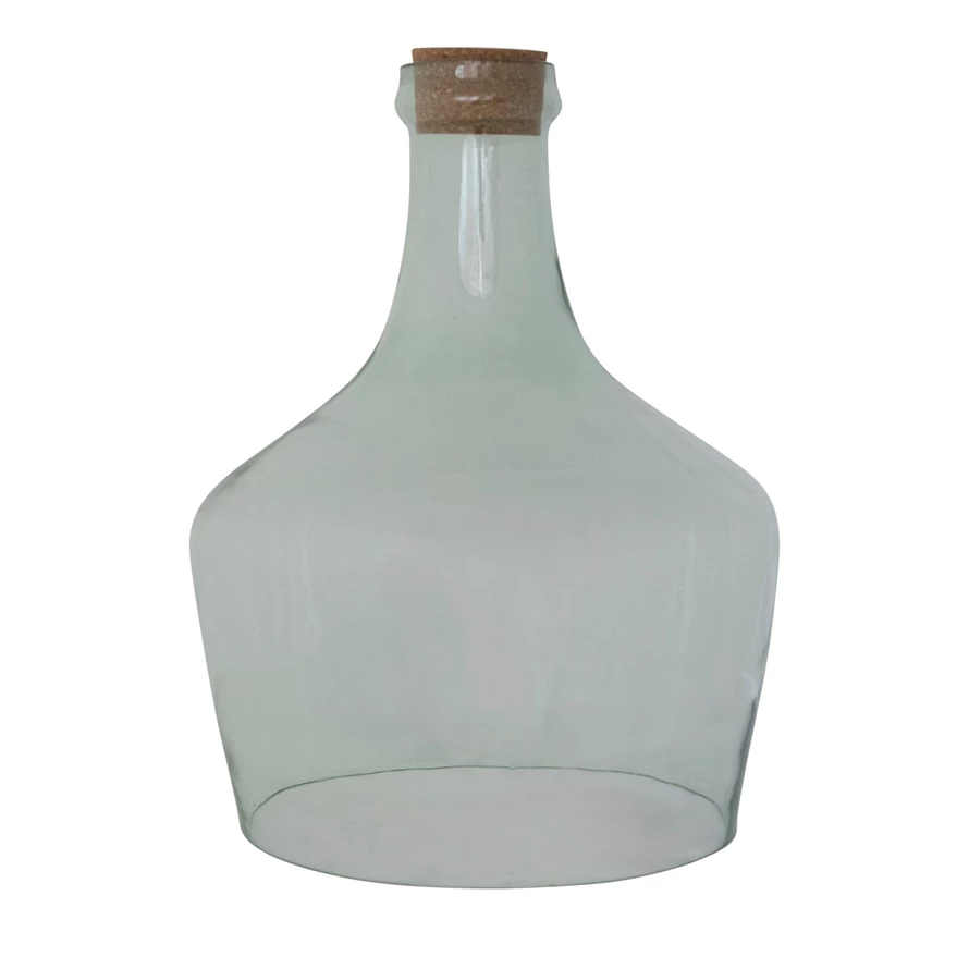Hand-Blown Recycled Glass Cloche with Cork Stopper