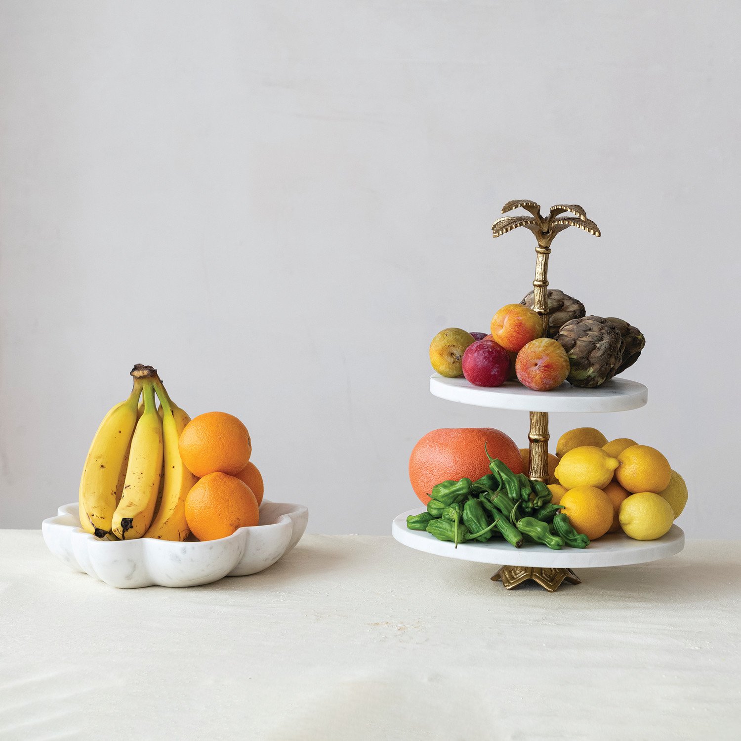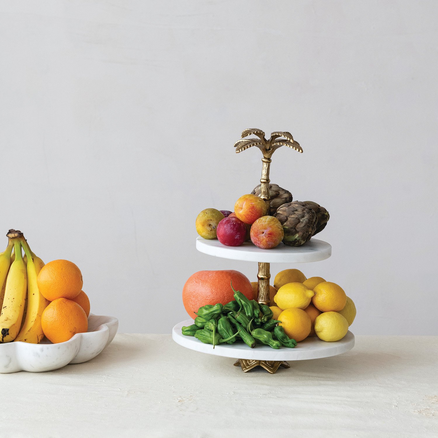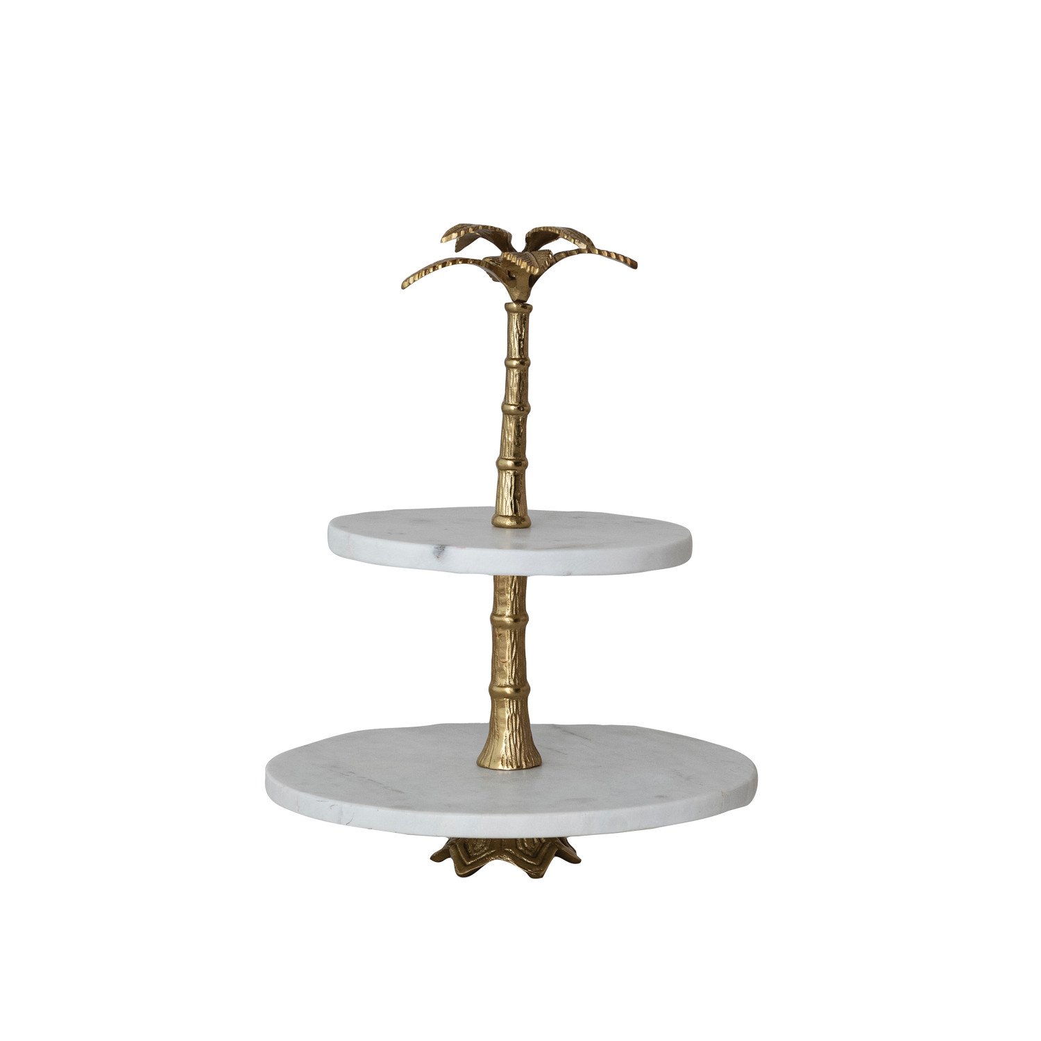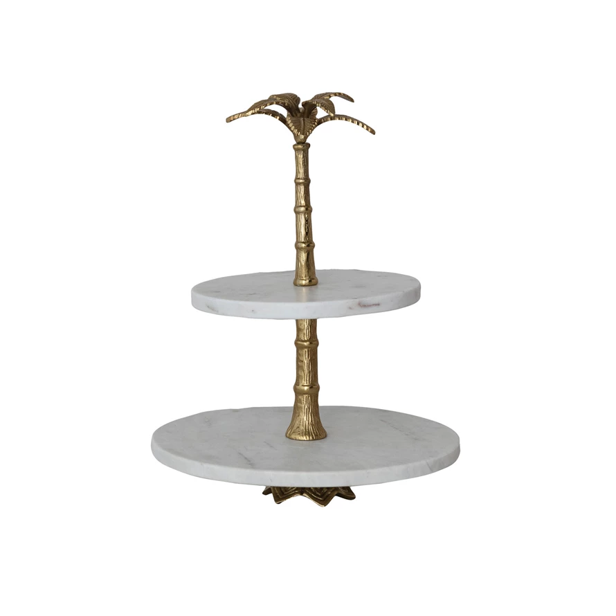 Marble 2-Tier Tray with Aluminum Palm Tree Shaped Handle, KD