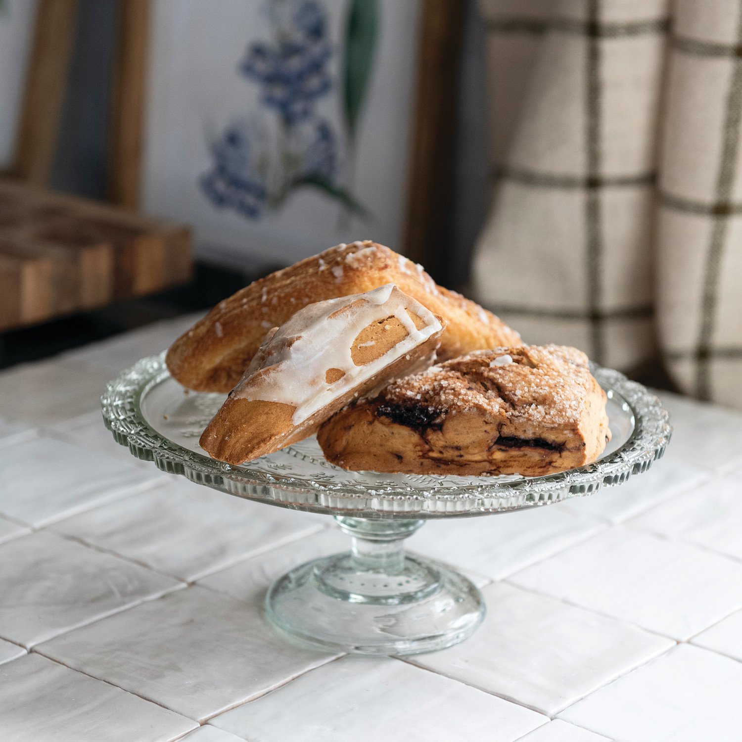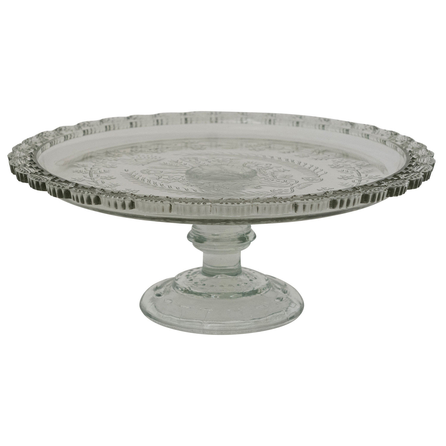 Pressed Glass Pedestal with Scalloped Edge