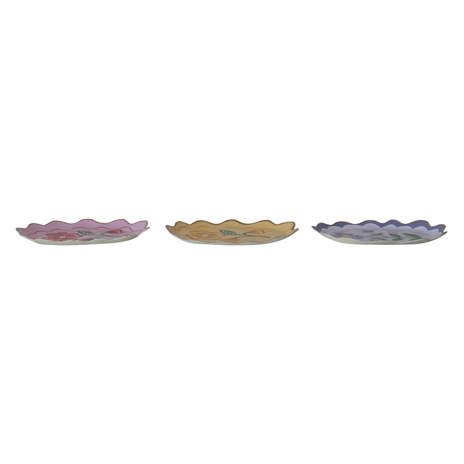 6-1/4"L x 4"W Enameled Metal Scalloped Tray with Flower & Gold Edge, 3 Styles ©