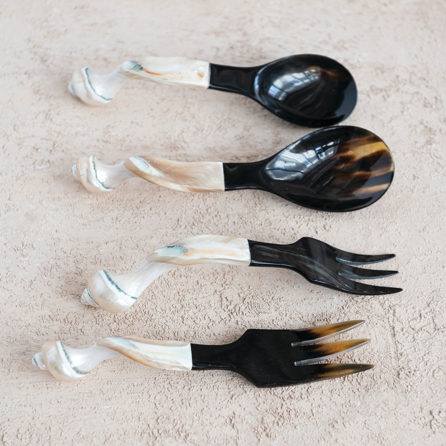 Natural Horn Servers with Shell Handles, Set of 2 (Each One Will Vary)