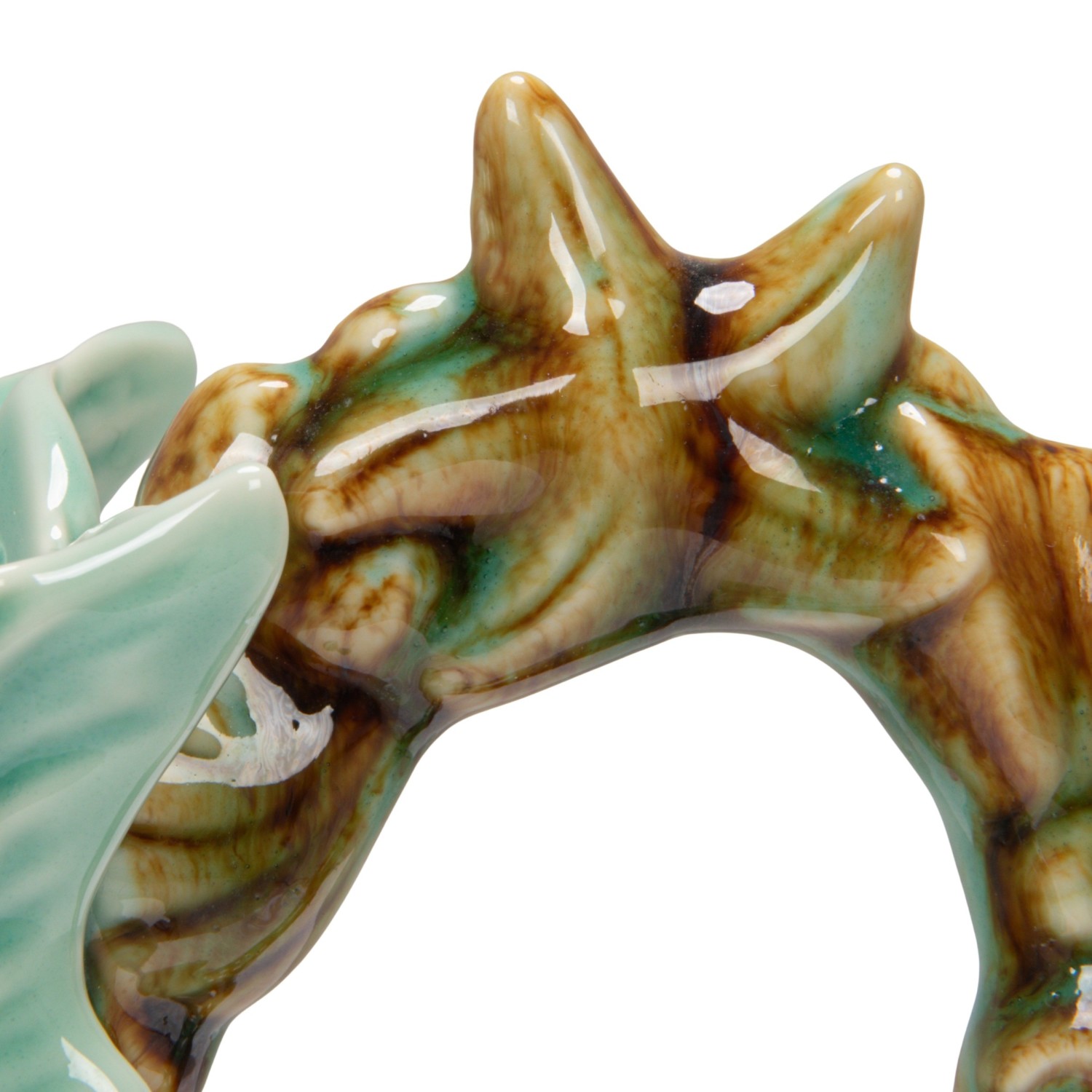 Catalog Name: 8-1/2"L x 5"W x 7"H 1 Quart Stoneware Shell Shaped Pitcher w/ Starfish & Shells Handle, Blue & Brown