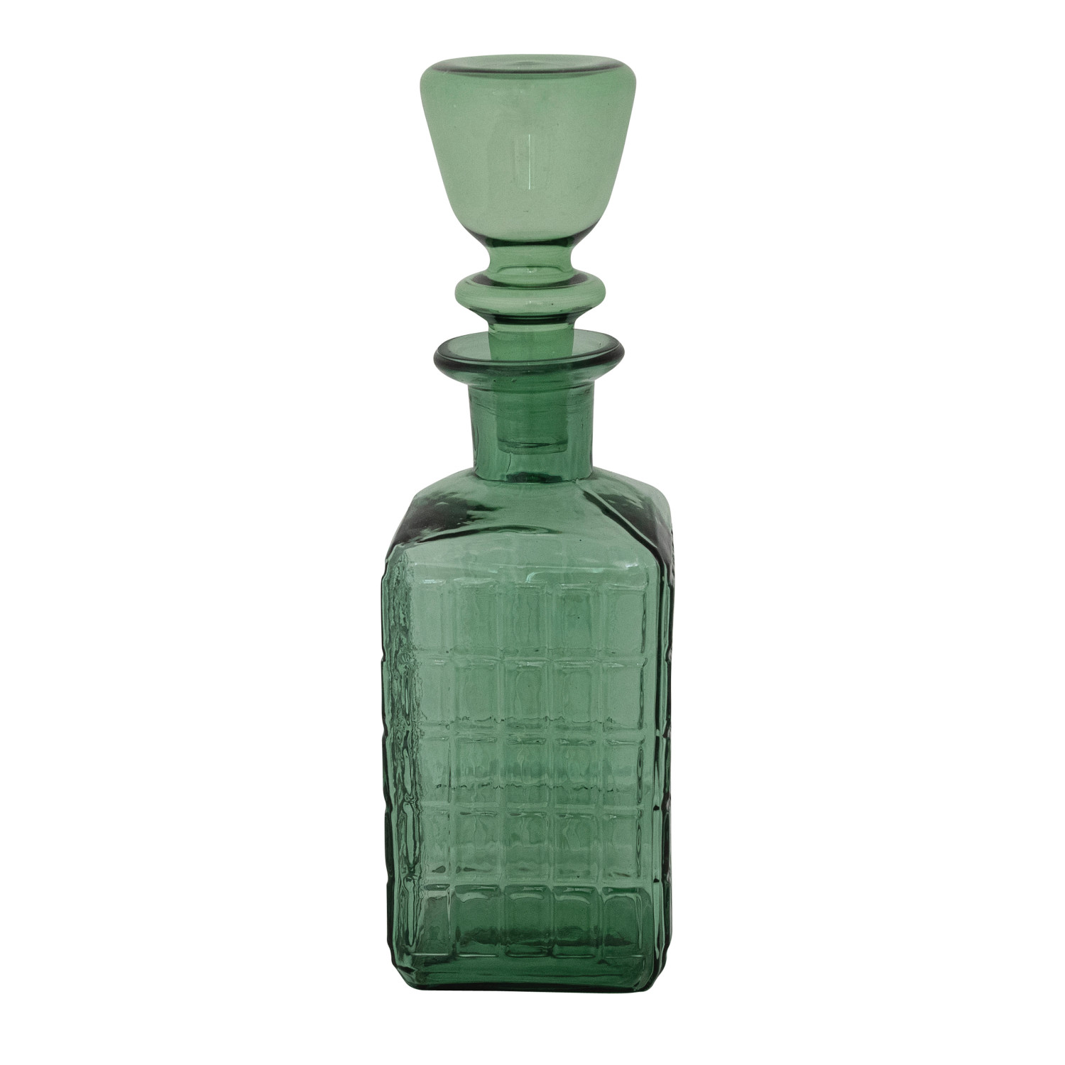 28 oz. Embossed Glass Decanter with Stopper & Grid Pattern, Dark Green