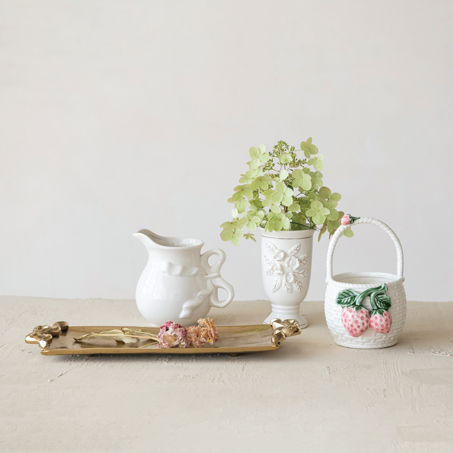 Catalog Name: 6-1/4"L x 5"W x 6"H 32 oz. Stoneware Pitcher w/ Bow Shaped Handle, White