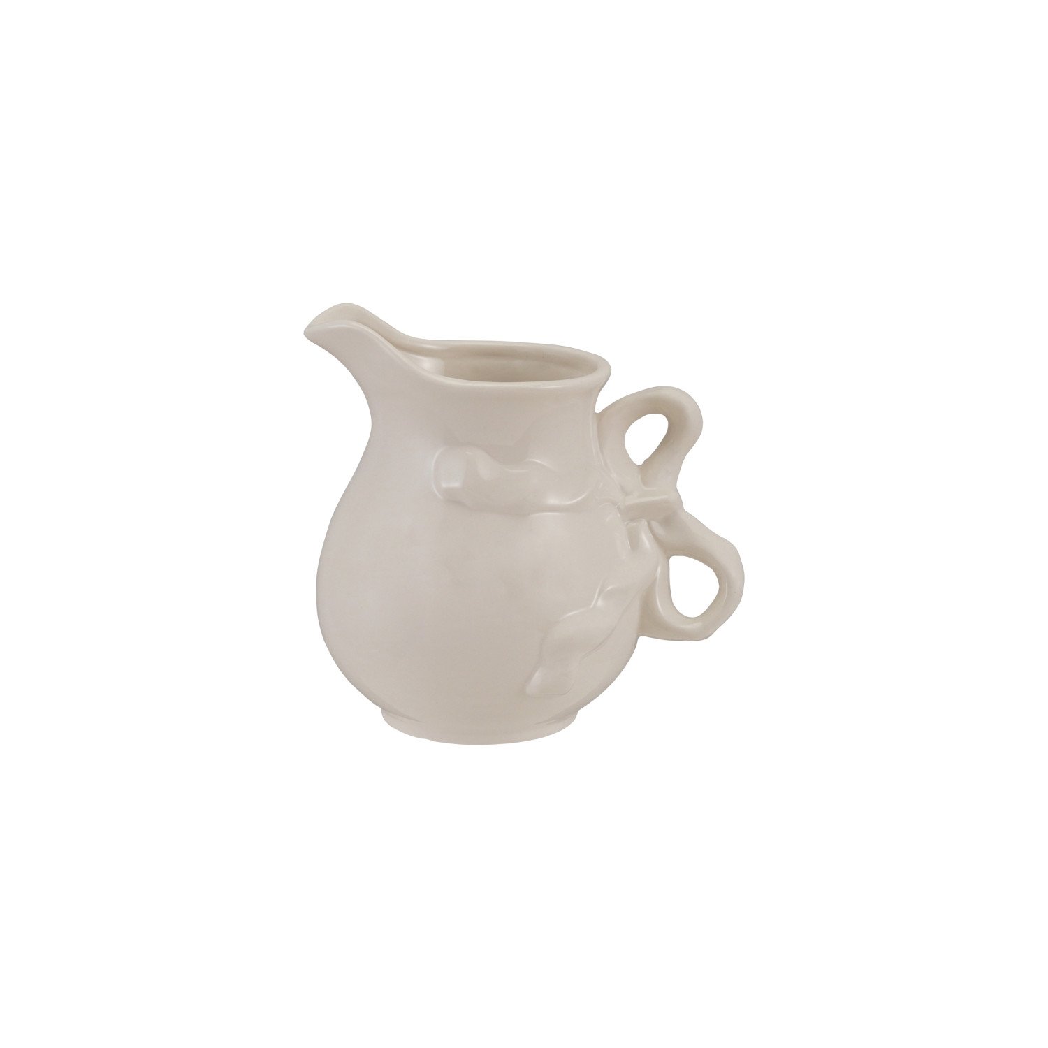 Catalog Name: 6-1/4"L x 5"W x 6"H 32 oz. Stoneware Pitcher w/ Bow Shaped Handle, White