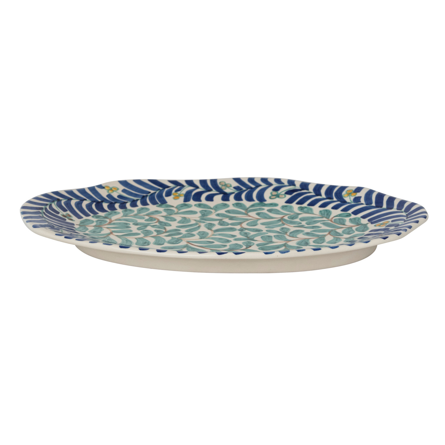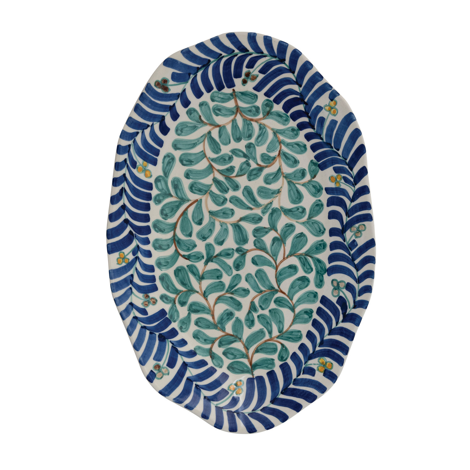 Catalog Name: 17"L x 11-1/4"W Oval Hand-Painted Stoneware Platter w/ Vines Design, Multi Color (Each One Will Vary)