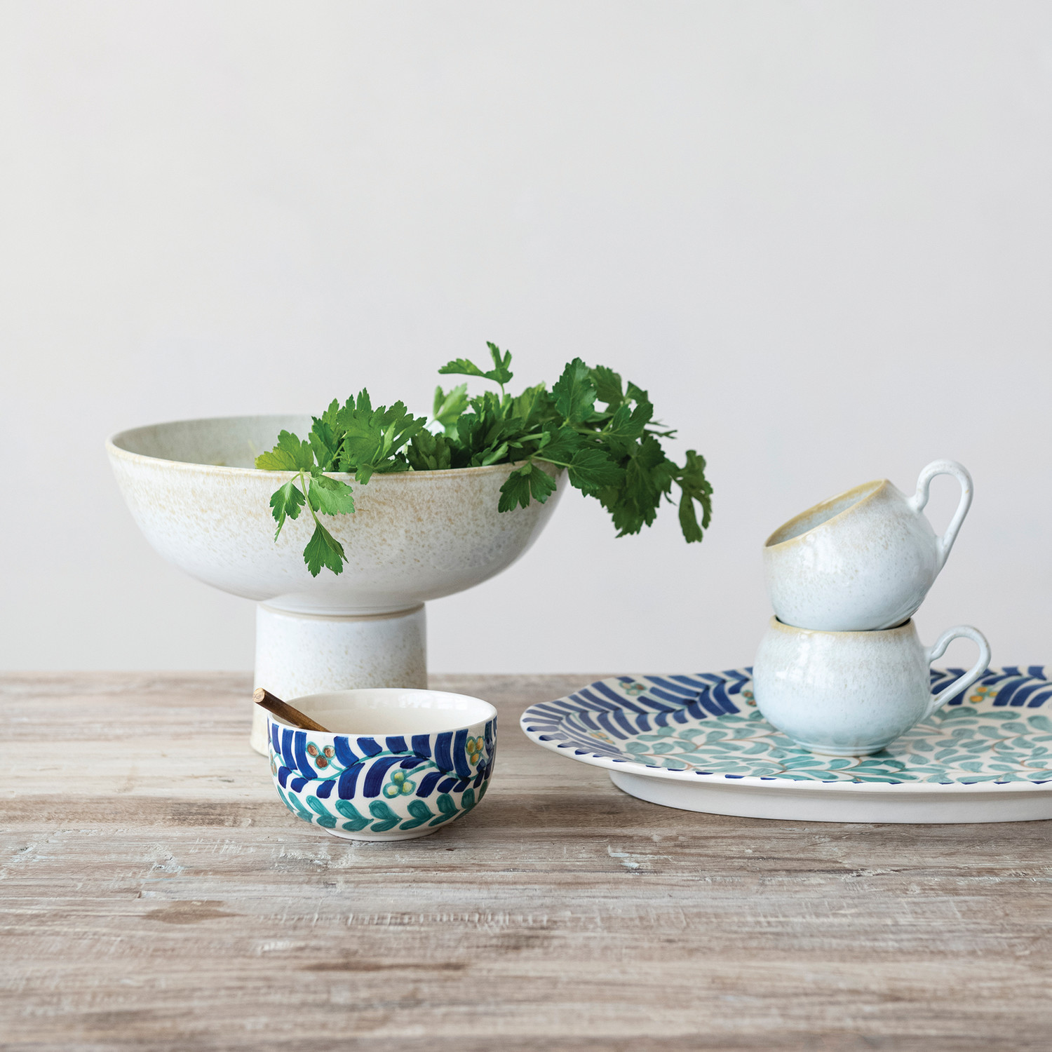 Hand-Painted Stoneware Platter with Vines Design (Each One Will Vary)