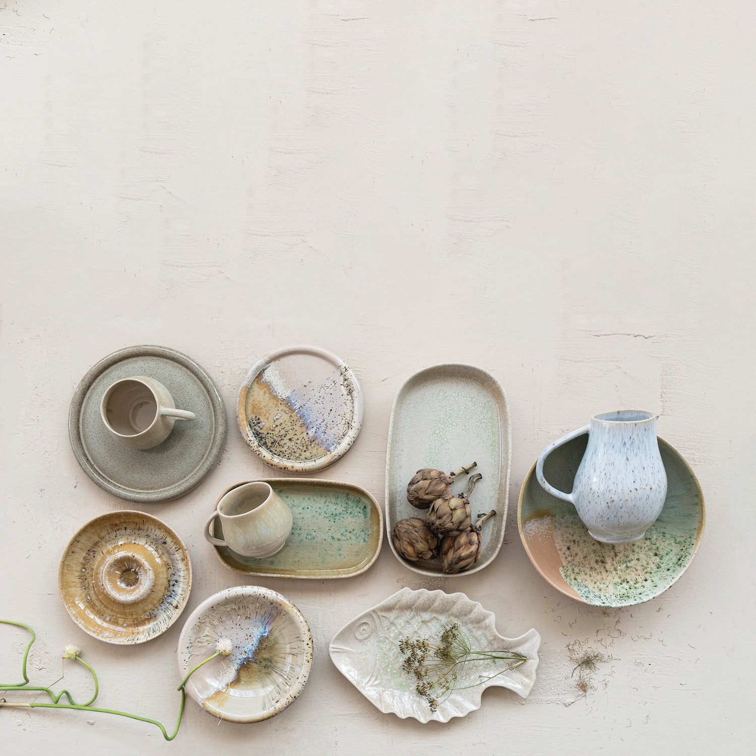 Catalog Name: 8-1/2" Round x 1-1/2"H Stoneware Chip & Dip, Reactive Glaze, Multi Color (Each One Will Vary)