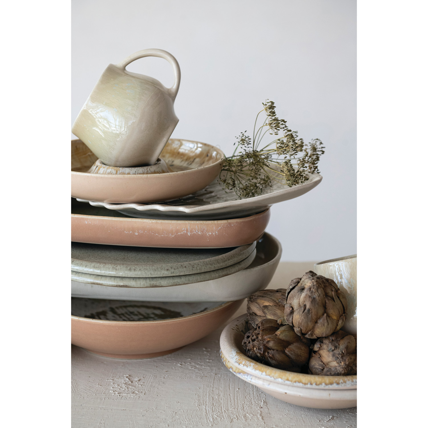 Catalog Name: 13-3/4"L x 8-1/2"W Stoneware Fish Shaped Platter, Reactive Glaze, Multi Color (Each One Will Vary)