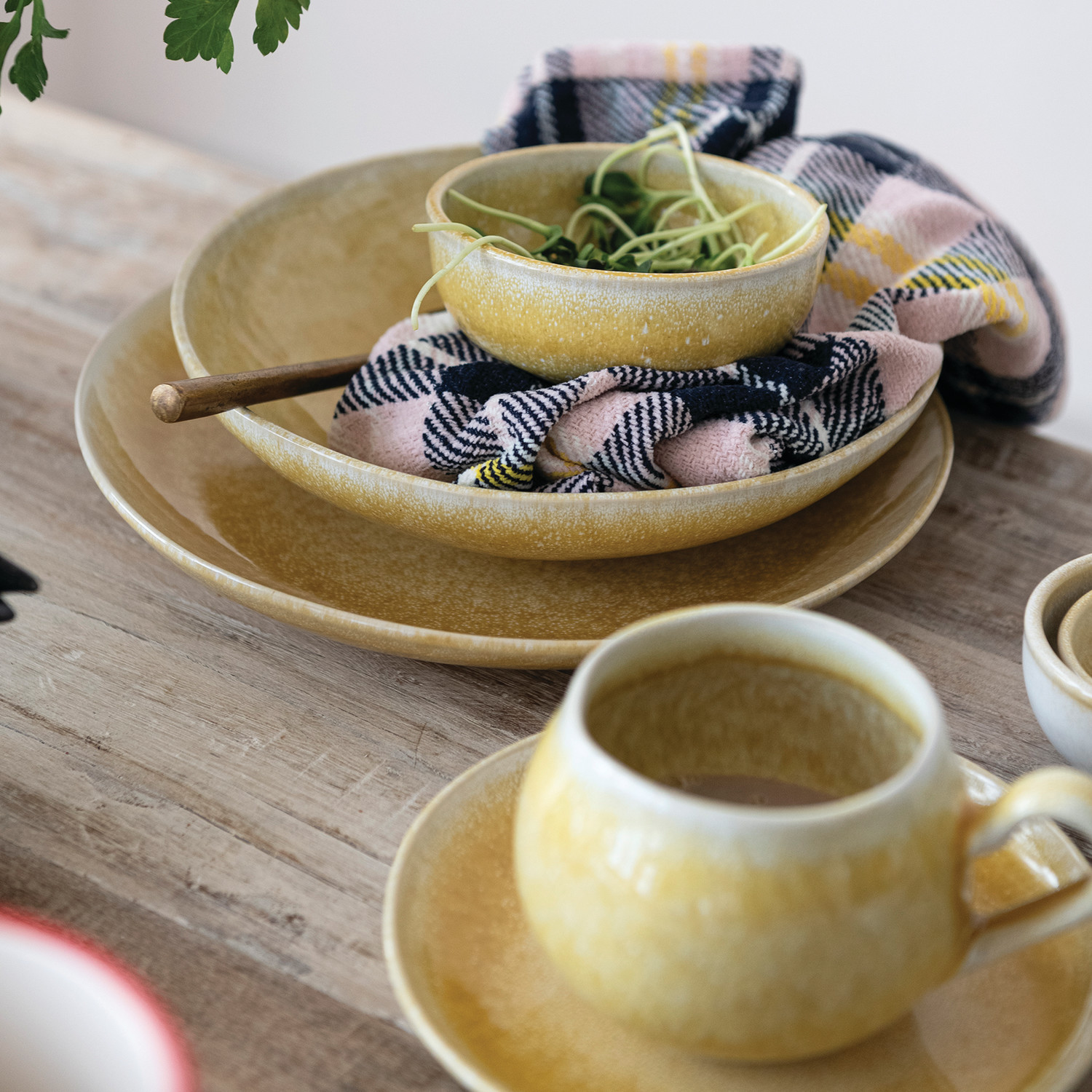 Stoneware Low Bowl, Yellow (Each One Will Vary)