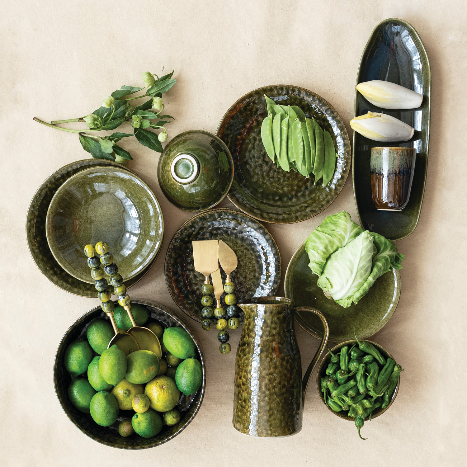 Stoneware Low Bowl, Green (Each One Will Vary)