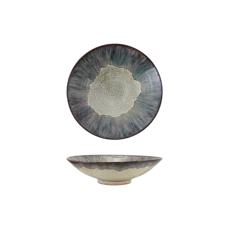 Catalog Name: 15-3/4" Round x 4-1/4"H Stoneware Serving Bowl, Reactive Glaze, Multi Color (Each One Will Vary)