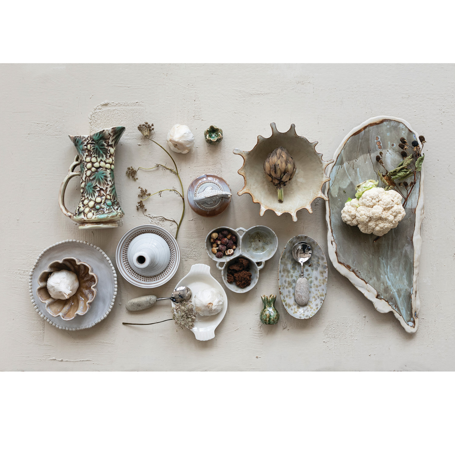 Catalog Name: 6-3/4"L x 6-1/4"W Stoneware Multi Bowl w/ 3 Sections, Reactive Glaze, Cream Color & Green (Each One Will Vary)