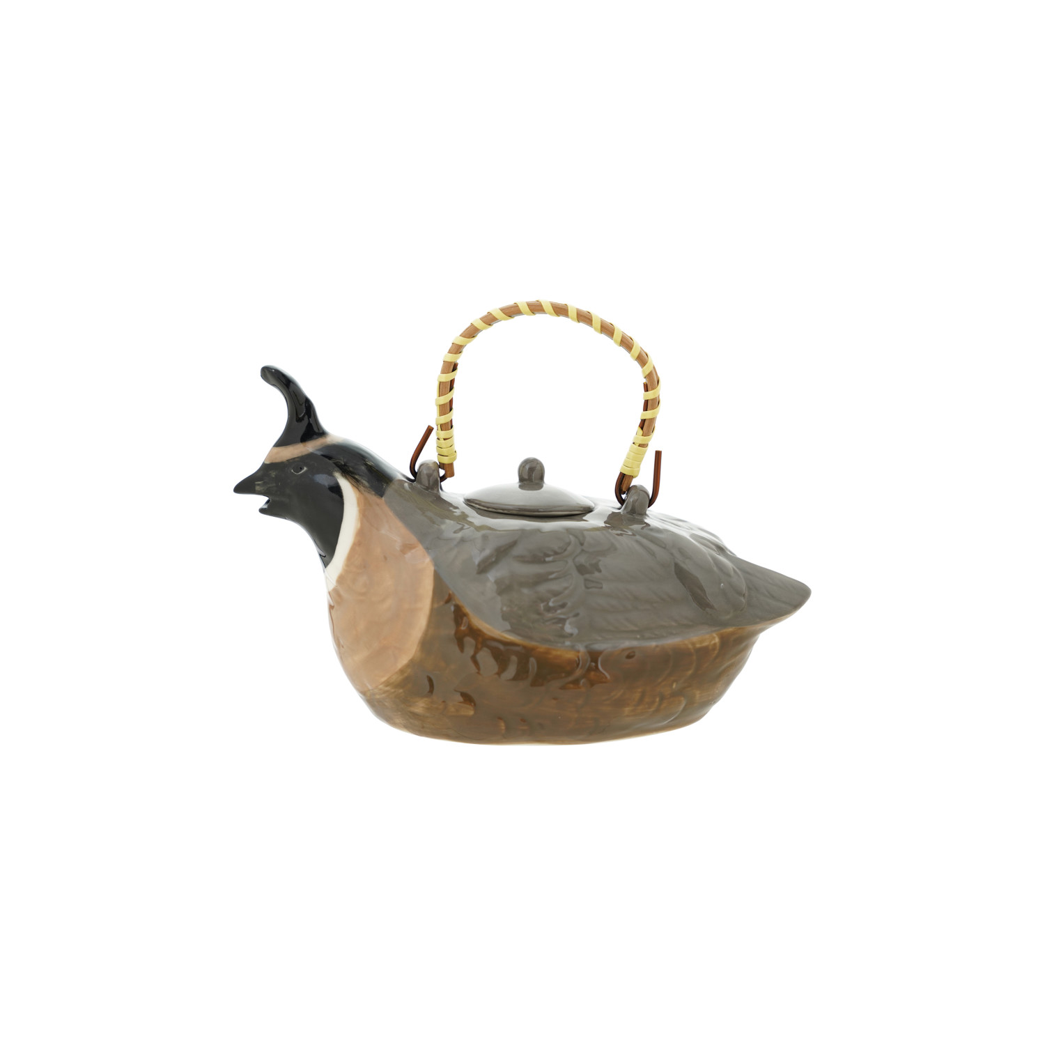 24 oz. Hand-Painted Stoneware Quail Shaped Teapot with Rattan Wrapped Handle