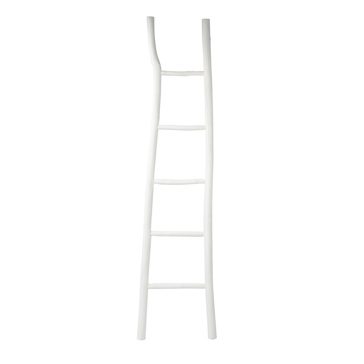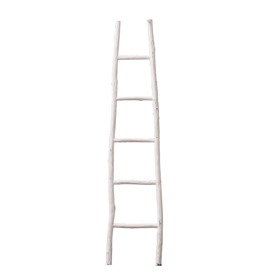Decorative Boho Painted Wood Blanket Ladder, White