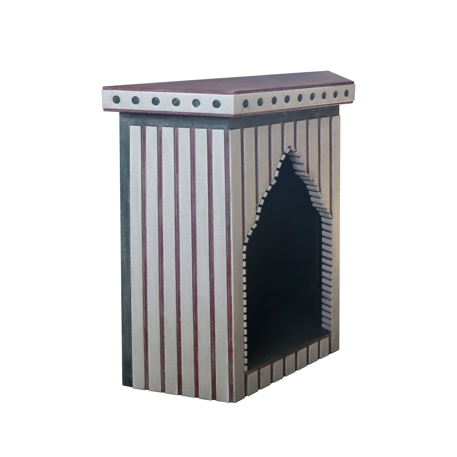Catalog Name: 42-3/4"W x 14"D x 43-1/4"H Decorative Wood & MDF Painted Fireplace Mantel w/ Stripes & Polka Dots, Heavily Distressed Finish, Antique White, Red & Green, Truck Ship (Each One Will Vary)