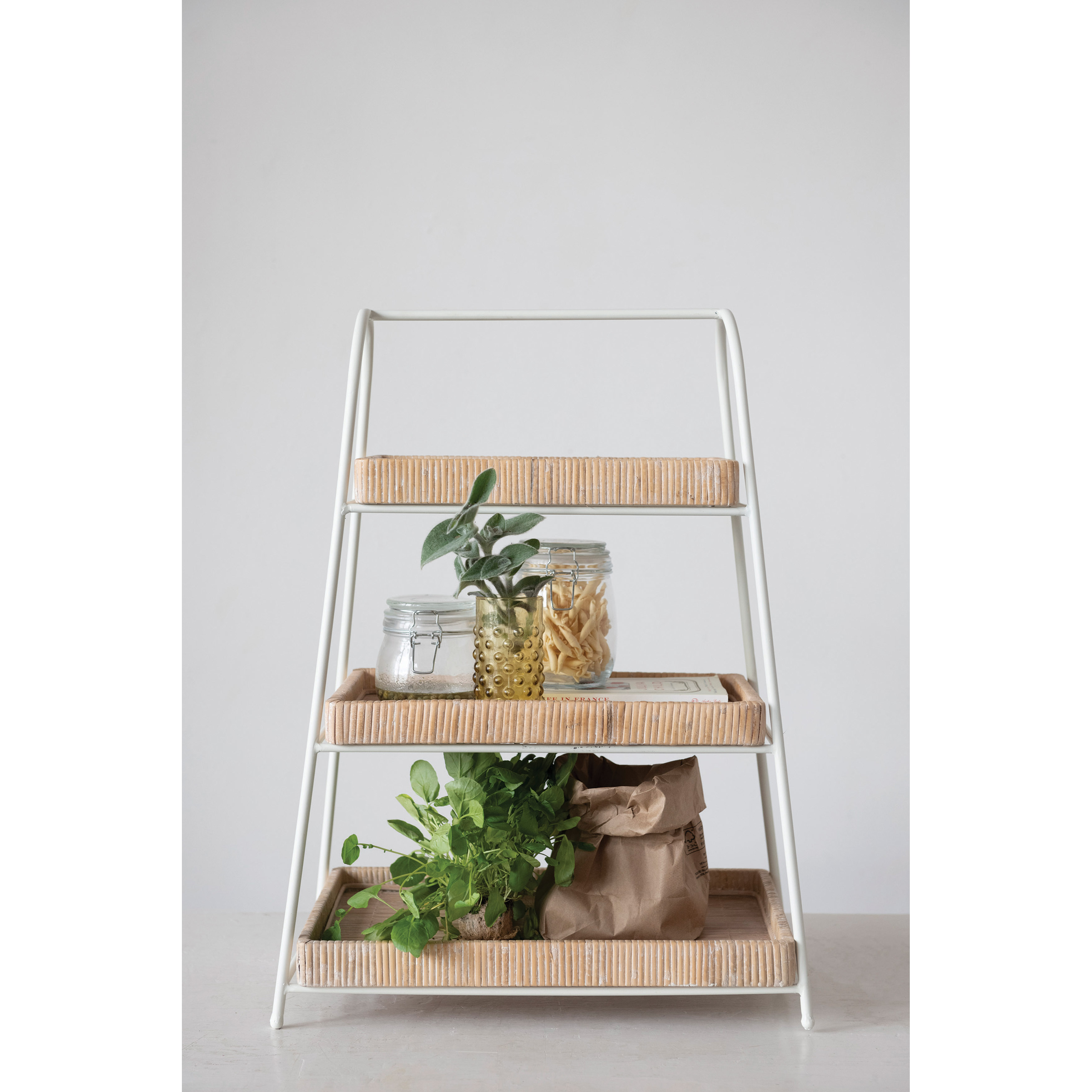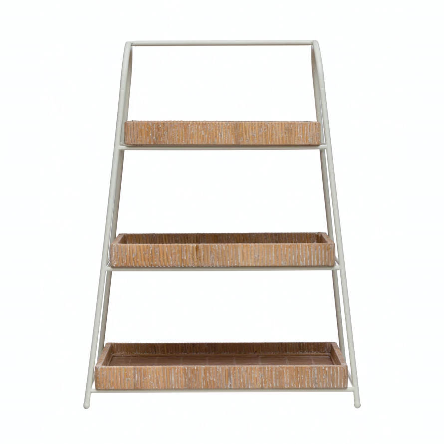 Catalog Name: 19-1/2"L x 11"W x 26"H Decorative Metal, Wood, Bamboo & MDF 3-Tier Tray w/ Removable Trays, White & Natural