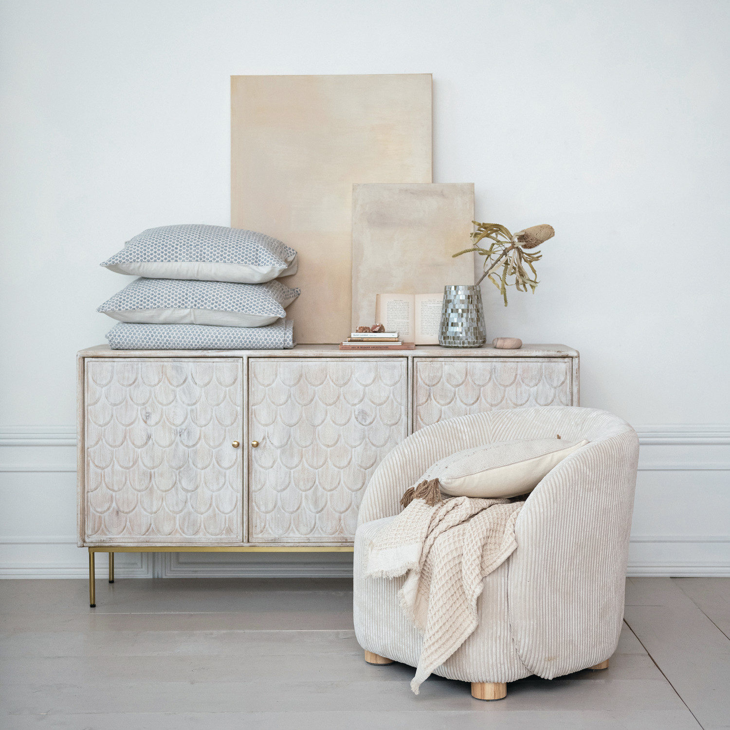 This Mango Wood Console captures the essence of a serene seaside retreat with its charming, scalloped design and refreshing white hue. The console spans 69.0 inches in length, stands 16.0 inches wide, and reaches a height of 35.0 inches, providing ample room for storage and display. Crafted from the finest mango wood, known for its durability and distinctive grain, it is complemented by a robust metal frame, ensuring stability and longevity. Whether it's gracing a farmhouse kitchen, a modern minimalist living room, a cozy French country nook, or a breezy coastal-inspired space, this console brings both function and beauty to the home. It's not just furniture; it's a statement of style and a testament to tasteful living.