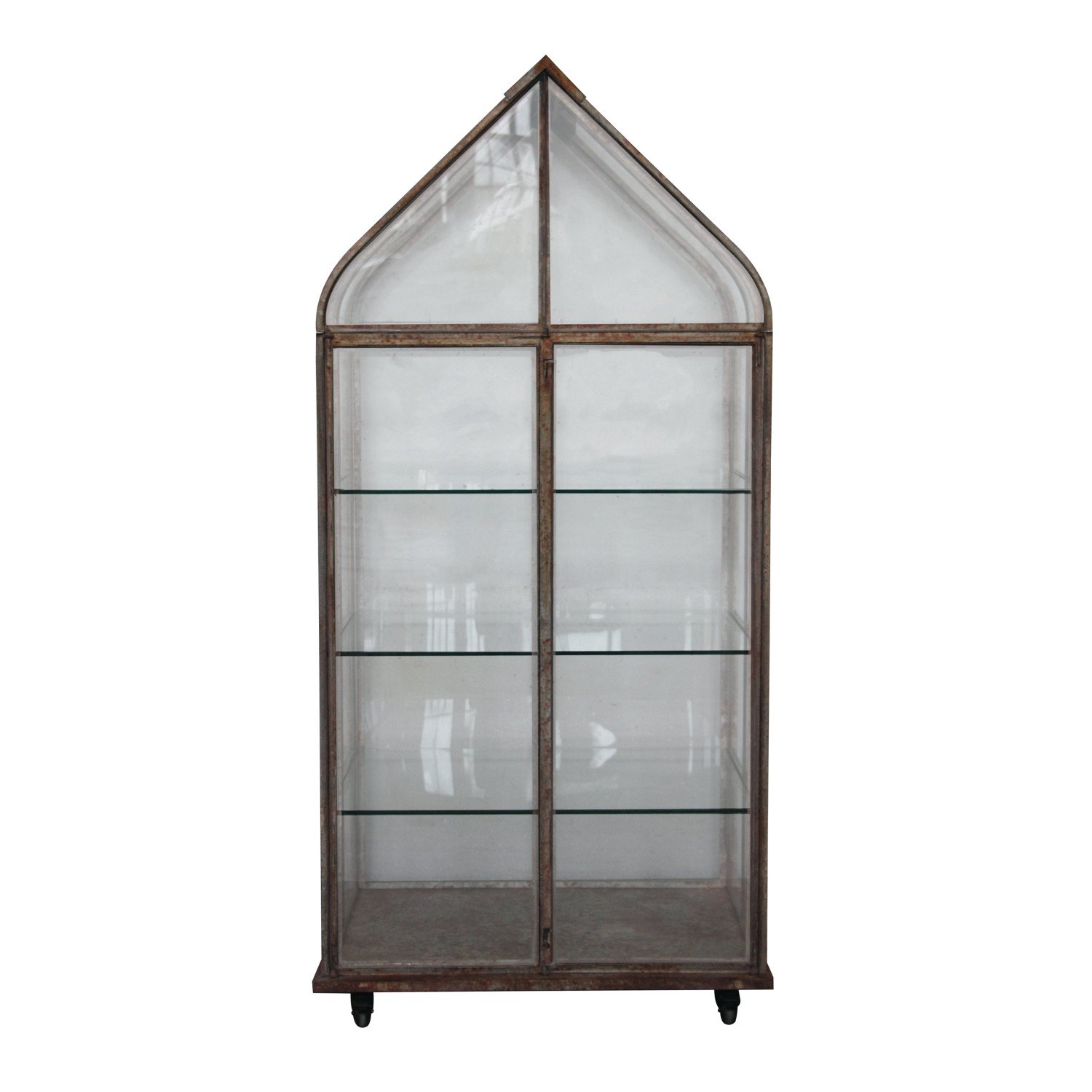 Catalog Name: 32-1/4"L x 24-1/4"W x 70"H Metal & Acrylic Terrarium on Casters w/ 3 Glass Shelves, Heavily Distressed Finish, KD, Truck Ship (Each One Will Vary)