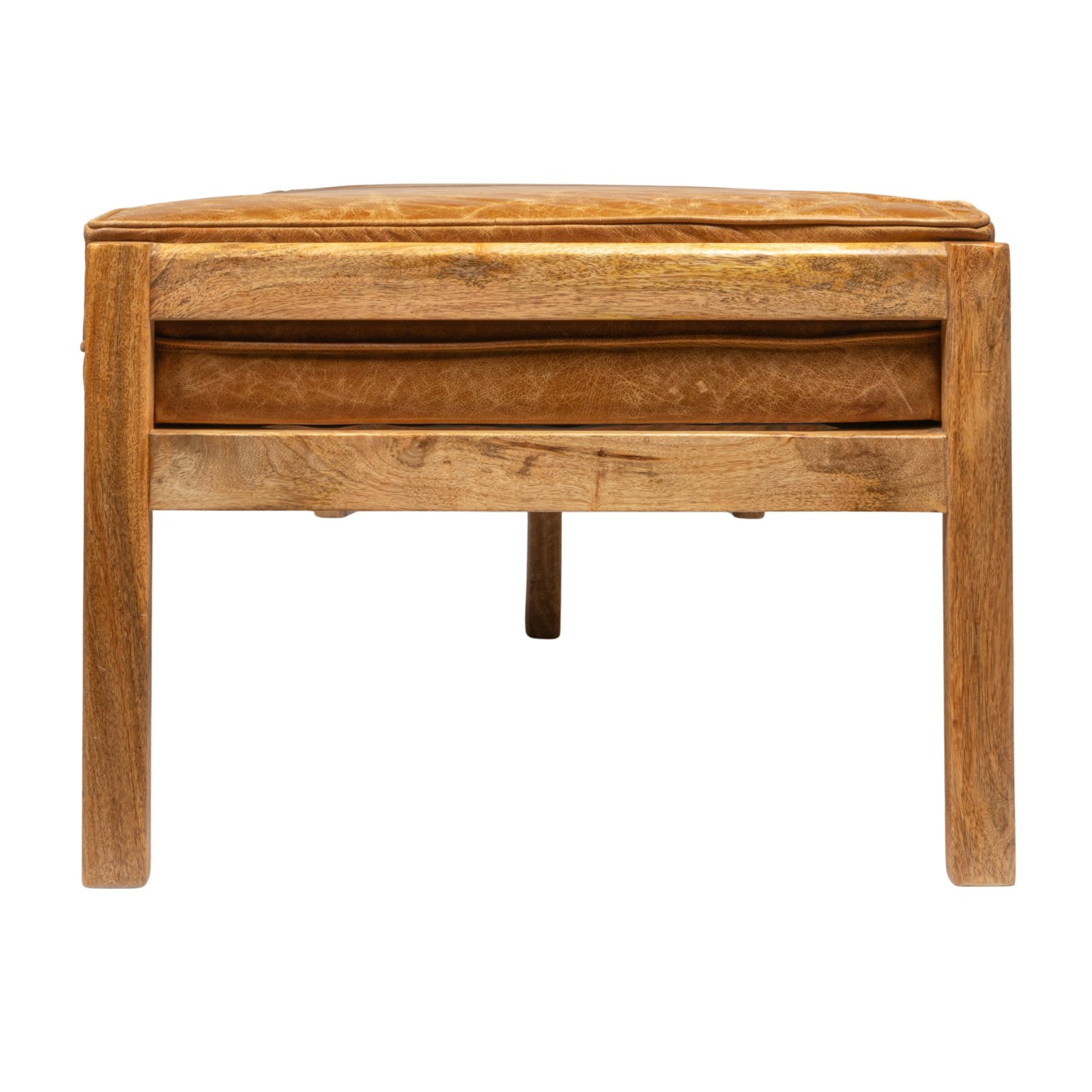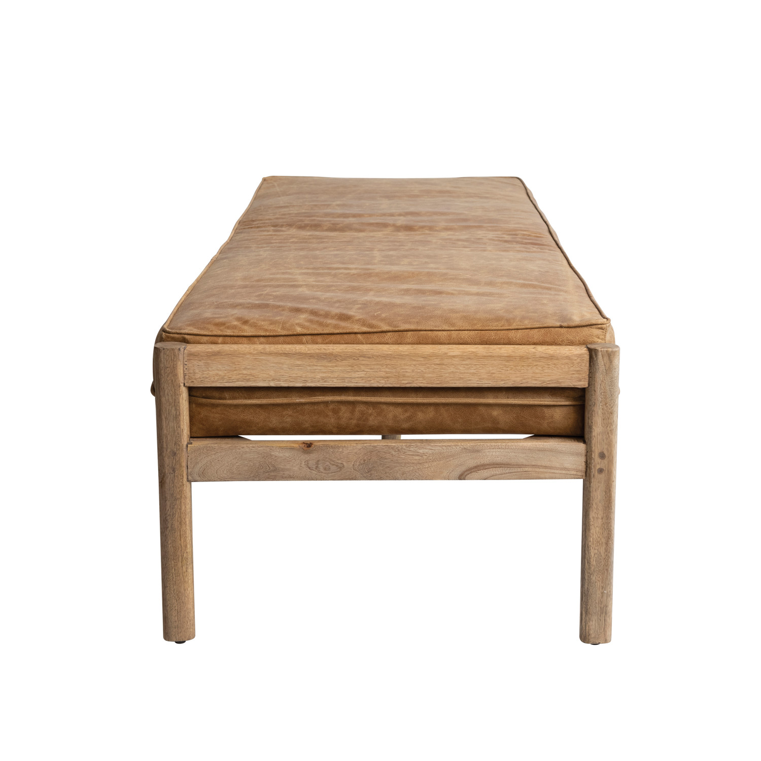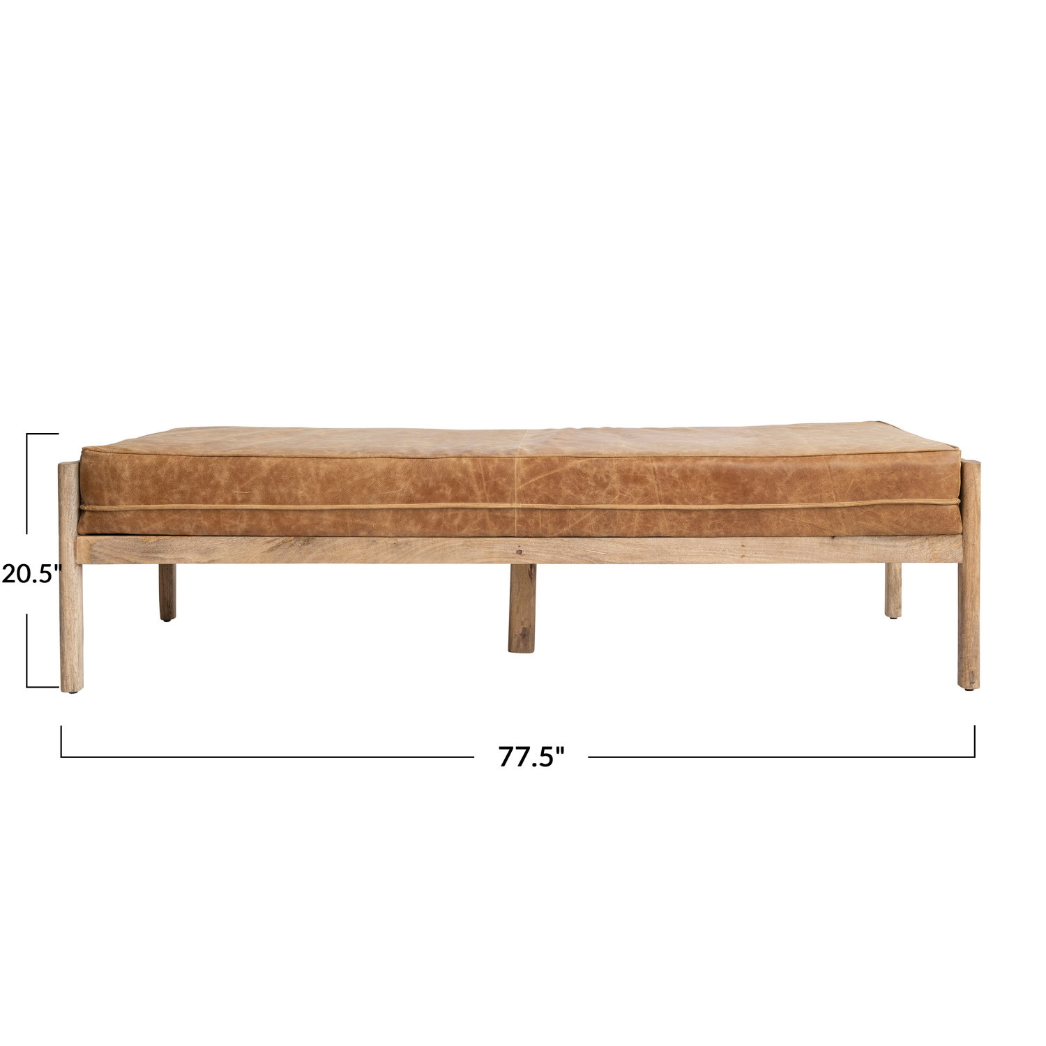 Add some coziness and elegance to any space with this mango wood and leather day bed/bench. This piece features a mango wood frame, that adds a touch of natural beauty and warmth to any room. The piece also has a leather cushion that provides comfort and style. The cushion is made of buffalo leather, which is durable and soft. The piece can be used as a day bed for napping or relaxing, or as an entryway bench for seating or storage. The piece is versatile and comfortable, suitable for any room of the home. The piece has a weight capacity of 551 pounds, making it suitable for multiple users. The piece is easy to assemble and measures 77.5 inches wide x 28 inches deep x 20.5 inches high. This day bed/bench is a perfect addition to bohemian, eclectic, or modern-style home décor. The mango wood and leather day bed/bench is a cozy and elegant piece that will add some comfort and charm to any space. Introducing the versatile Mango Wood Day Bed/Bench with Leather Cushion, a cozy and elegant day bed/bench that features a mango wood frame and a leather cushion. This day bed/bench is well-suited for bohemian, eclectic, and contemporary home decor styles, a versatile addition to various interior themes. This piece is a perfect day bed or entryway bench, with a leather cushion for comfort and style, and a hidden inter liner for durability and quality, and a weight capacity of 551 pounds for sturdy seating. A sturdy and durable piece that is made of mango wood, polyurethane foam, buffalo leather, and other materials.