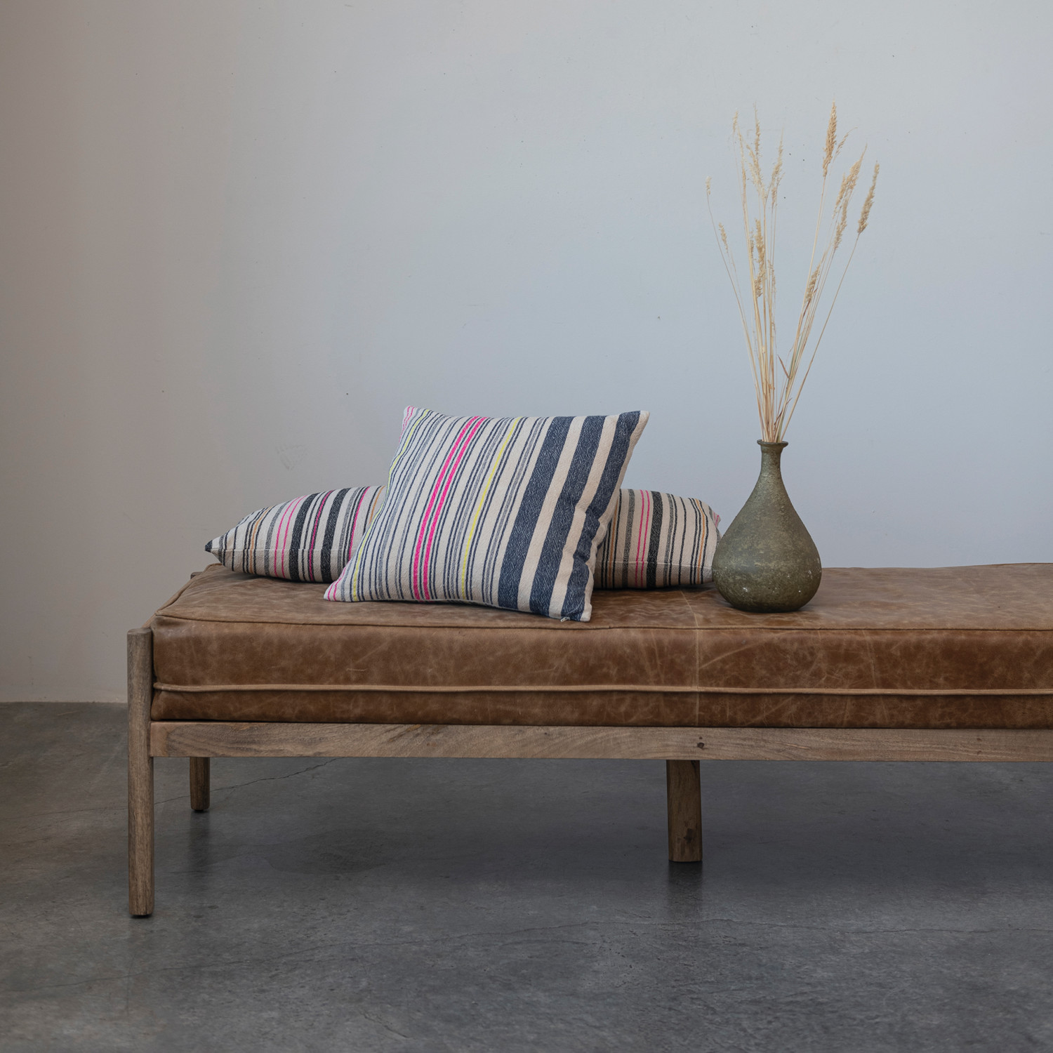 Catalog Name: 77-1/2"W x 28"D x 20-1/2"H Mango Wood Day Bed/Bench w/ Removable Distressed Leather Cushion, Natural & Hazelnut Color, Truck Ship