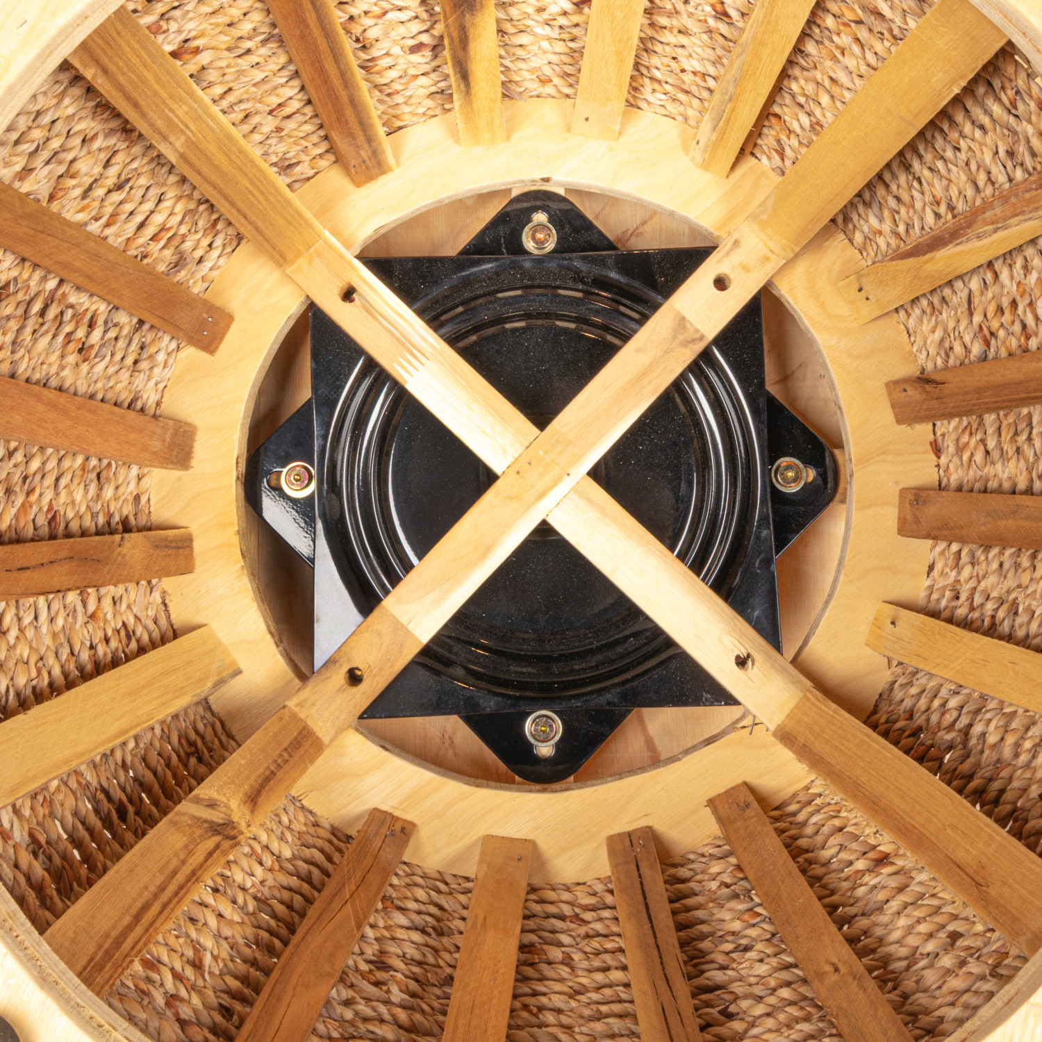 Hand-Woven Water Hyacinth & Acacia Wood Swivel Chair w/ Cushions