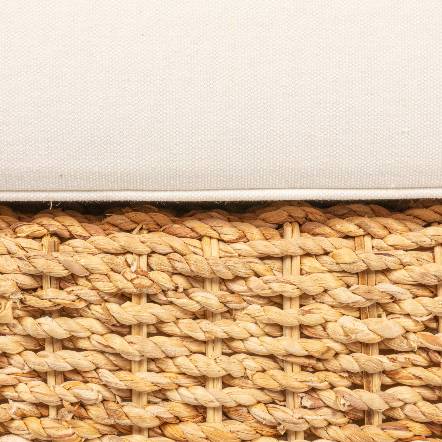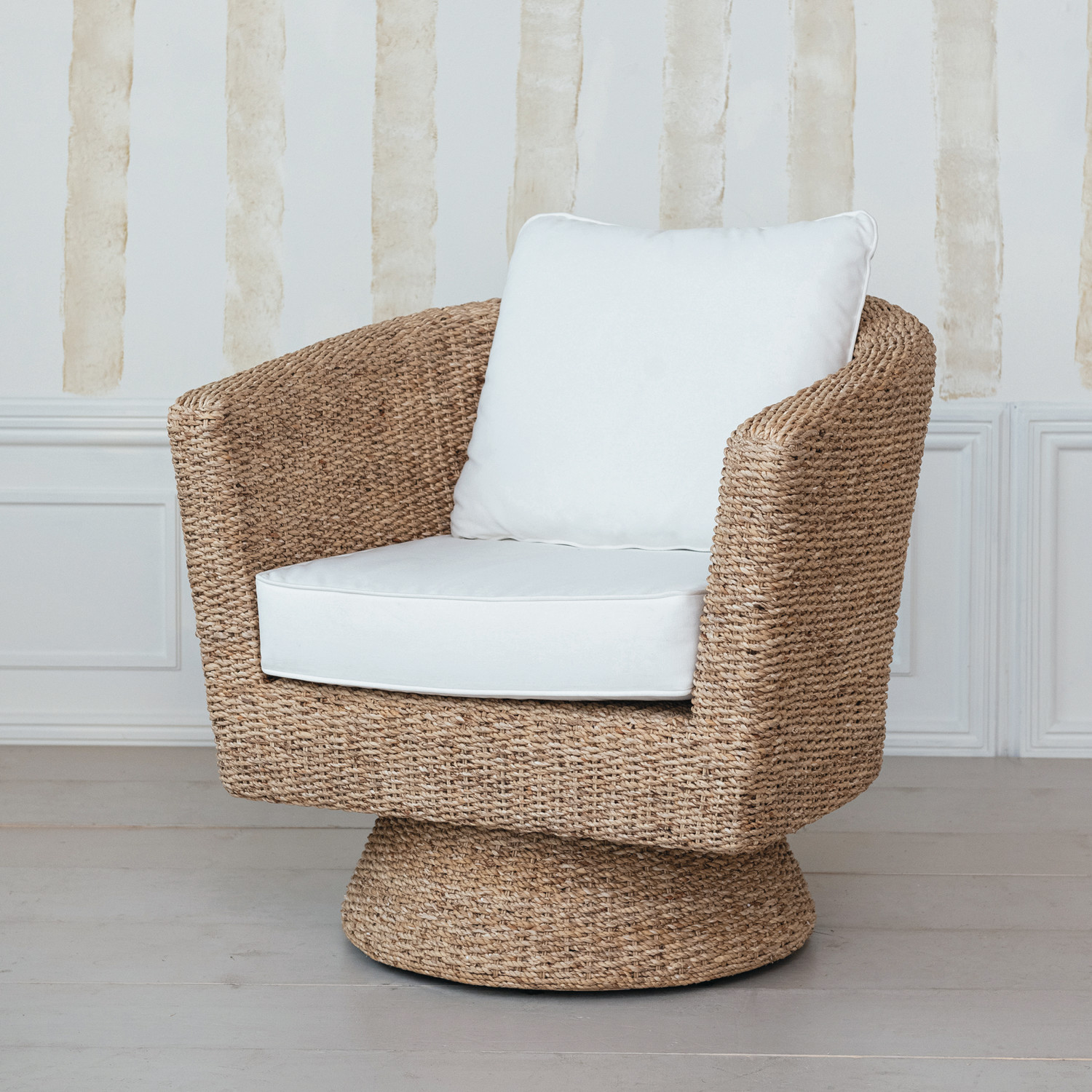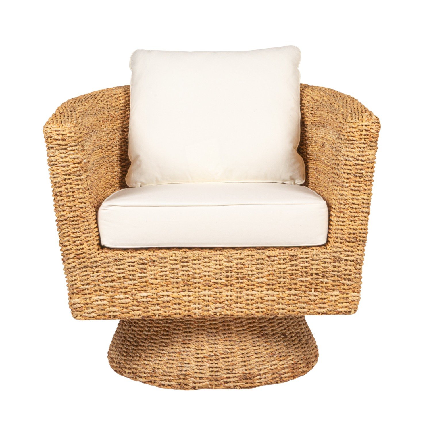 Catalog Name: 35"W x 30-3/4"D x 32-1/4"H Hand-Woven Water Hyacinth & Acacia Wood Swivel Chair w/ Cushions, Natural & White, Truck Ship