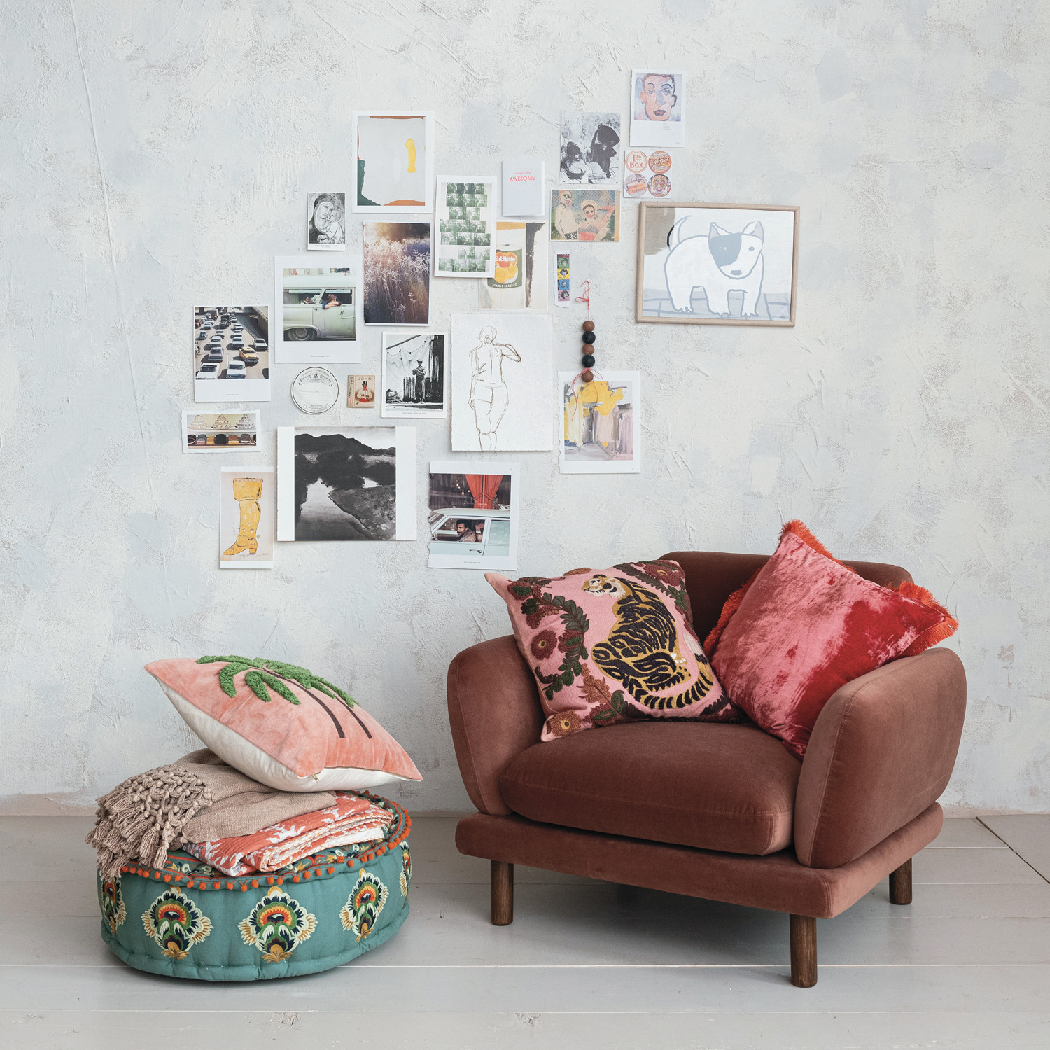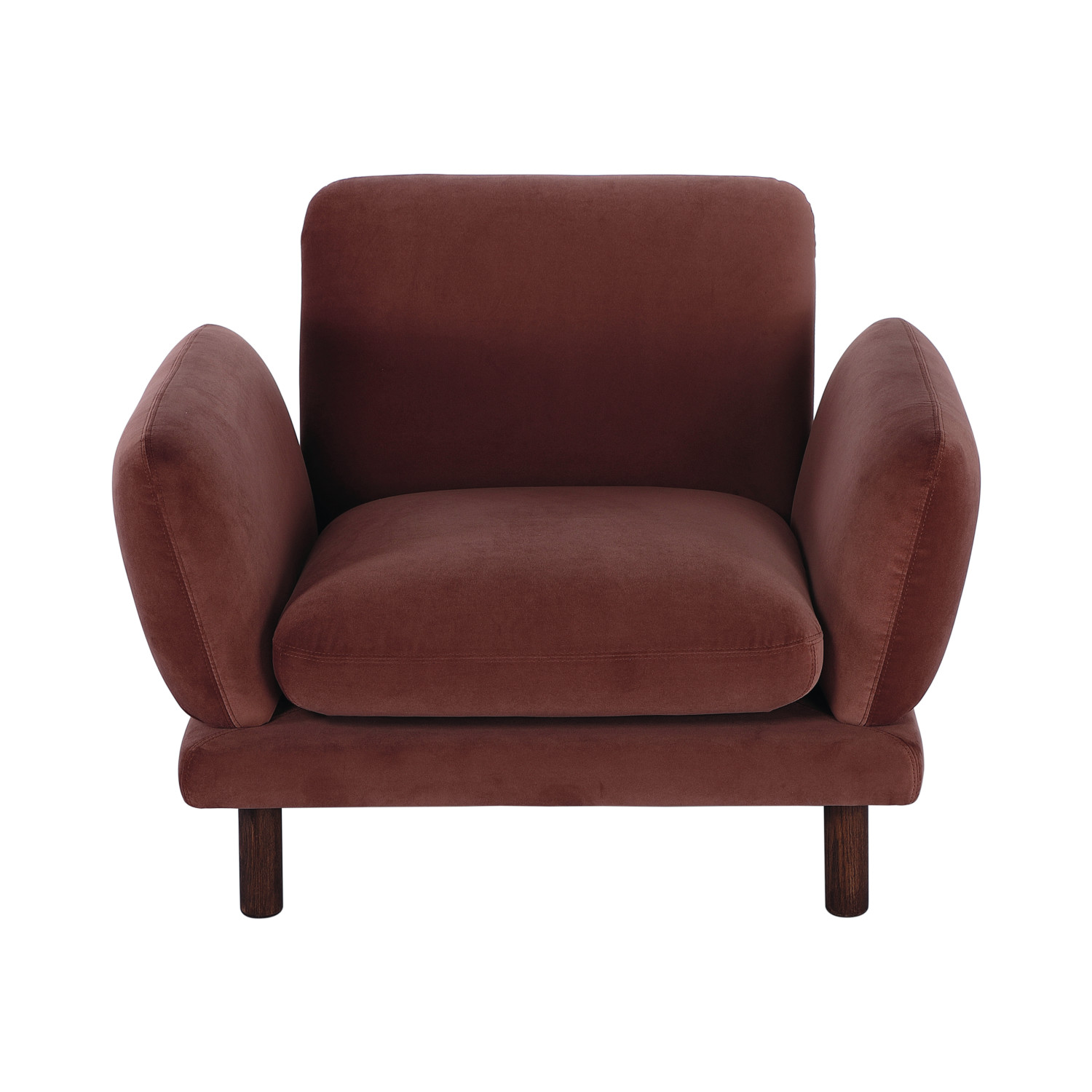 Catalog Name: 38"W x 31-3/4"D x 28"H Velvet Upholstered Chair w/ Oak Wood Legs, Clay Color & Natural, KD, Truck Ship