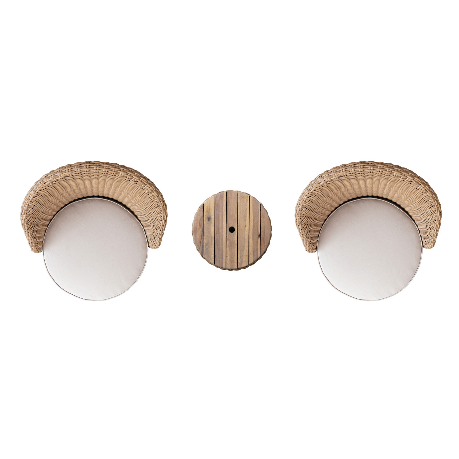 (2) Plastic Wicker Swivel Chairs with Storage Table, Set of 3
