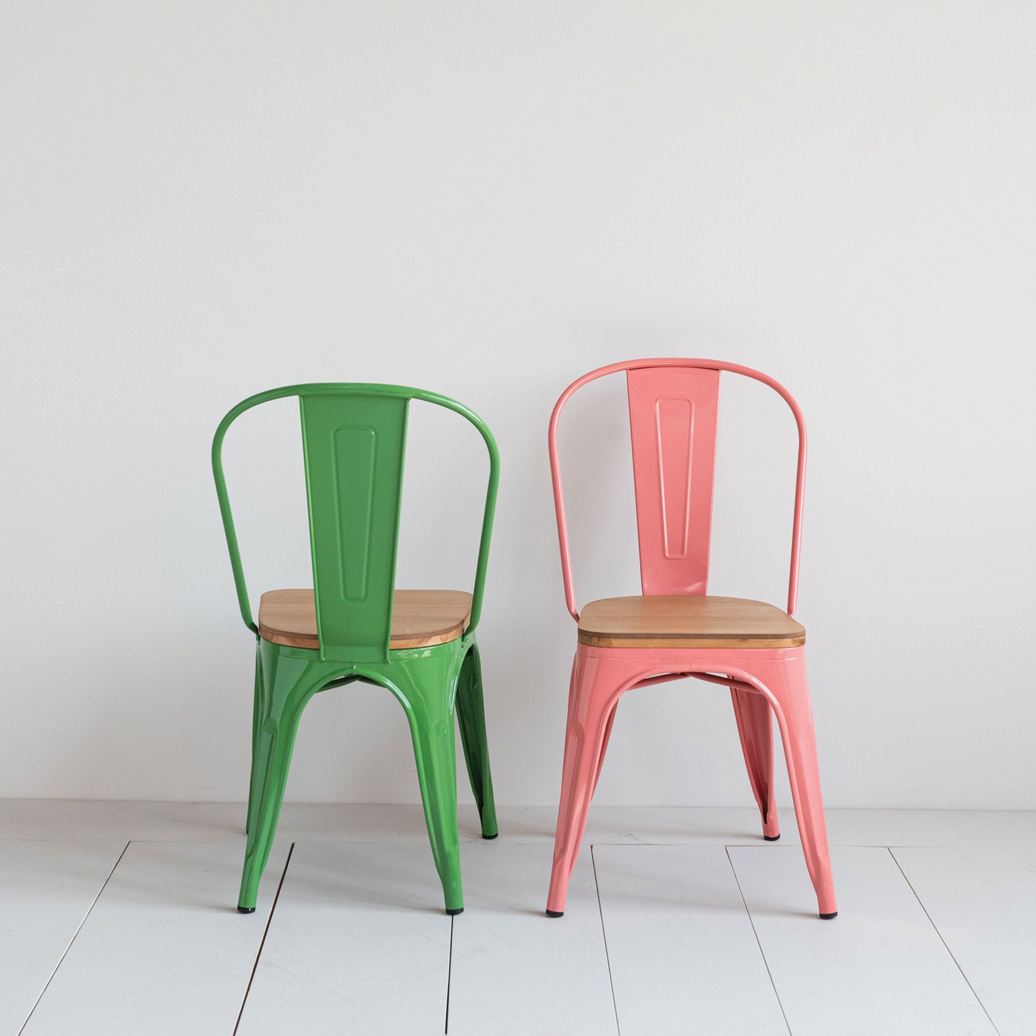 Metal & Wood Schoolhouse Chair, Pink & Natural