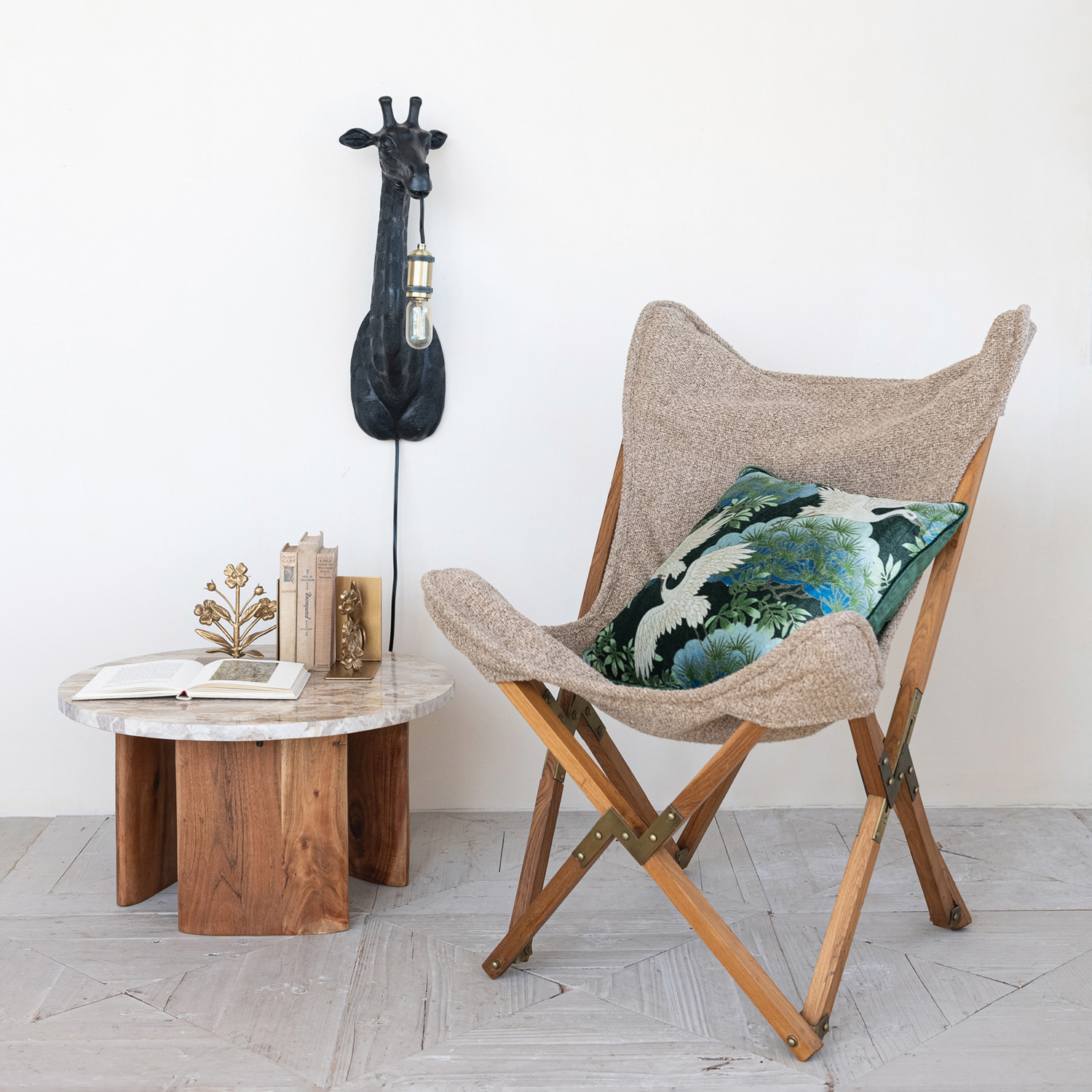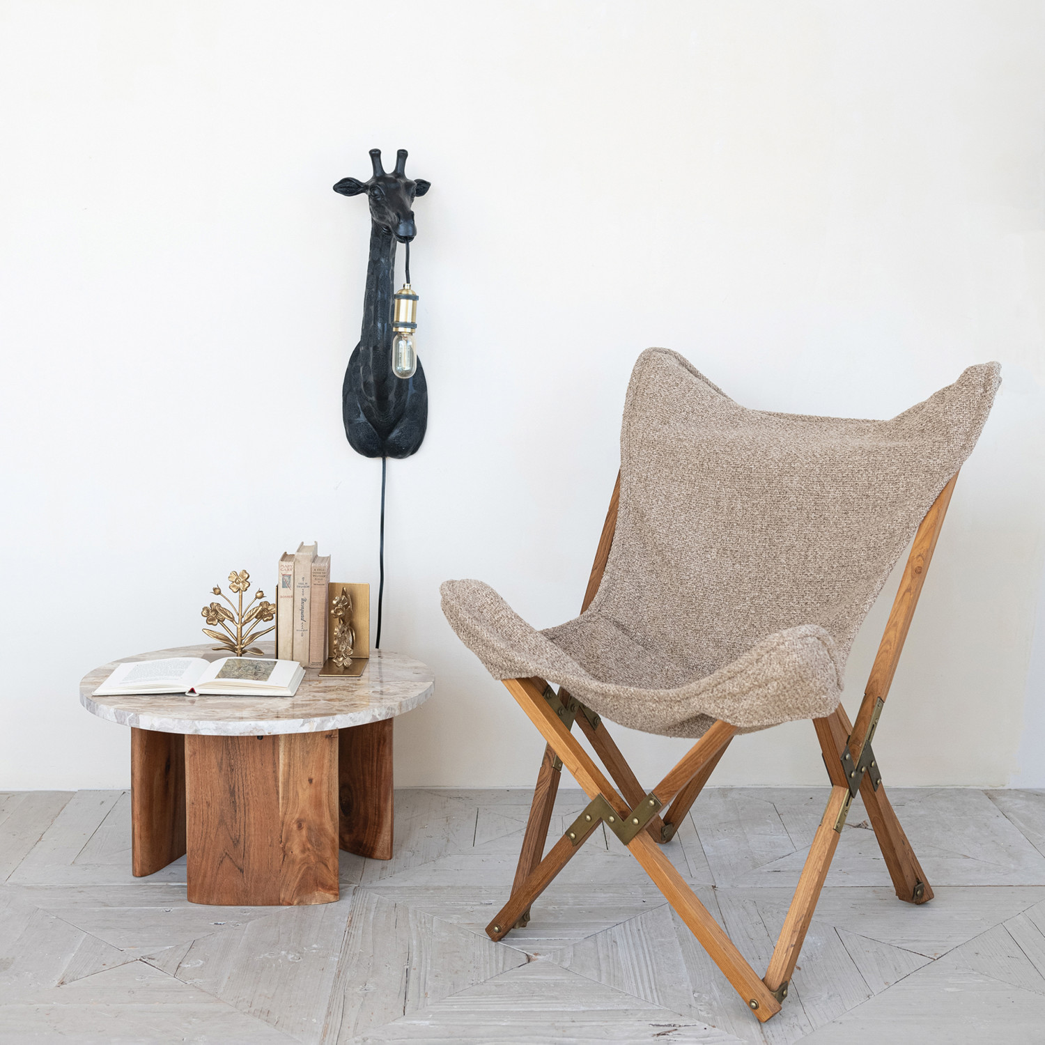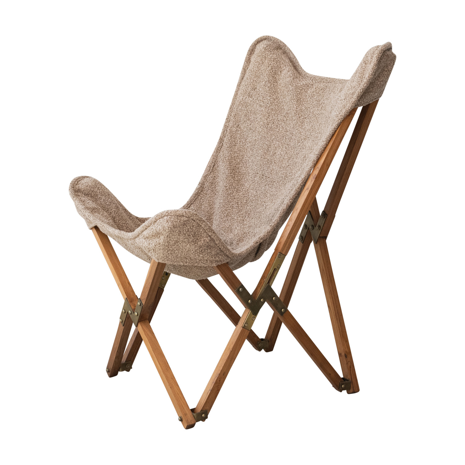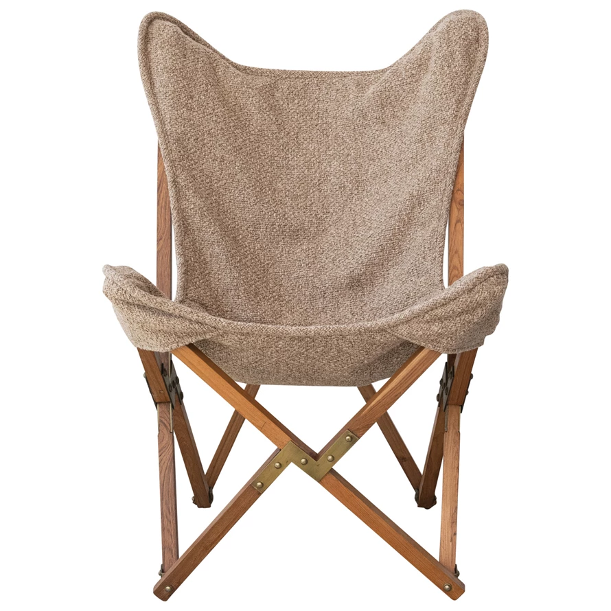 Catalog Name: 26"W x 27"D x 35"H Teakwood & Metal Butterfly Chair w/ Cotton Slub Double Sided Cover, Tan Color & Natural, KD