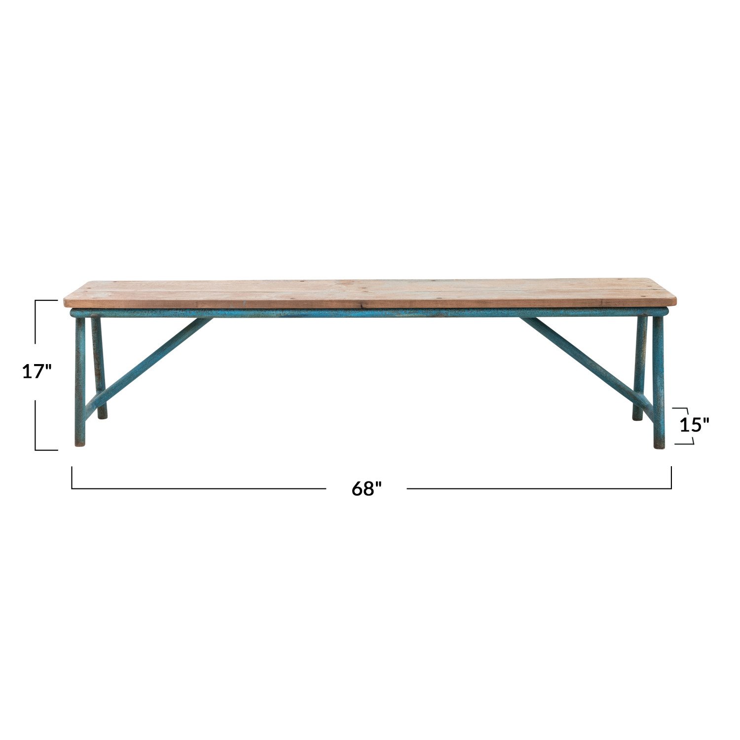 Catalog Name: 68"W x 15"D x 17"H Reclaimed Wood & Metal Bench, Natural & Distressed Blue, Truck Ship (Each One Will Vary)