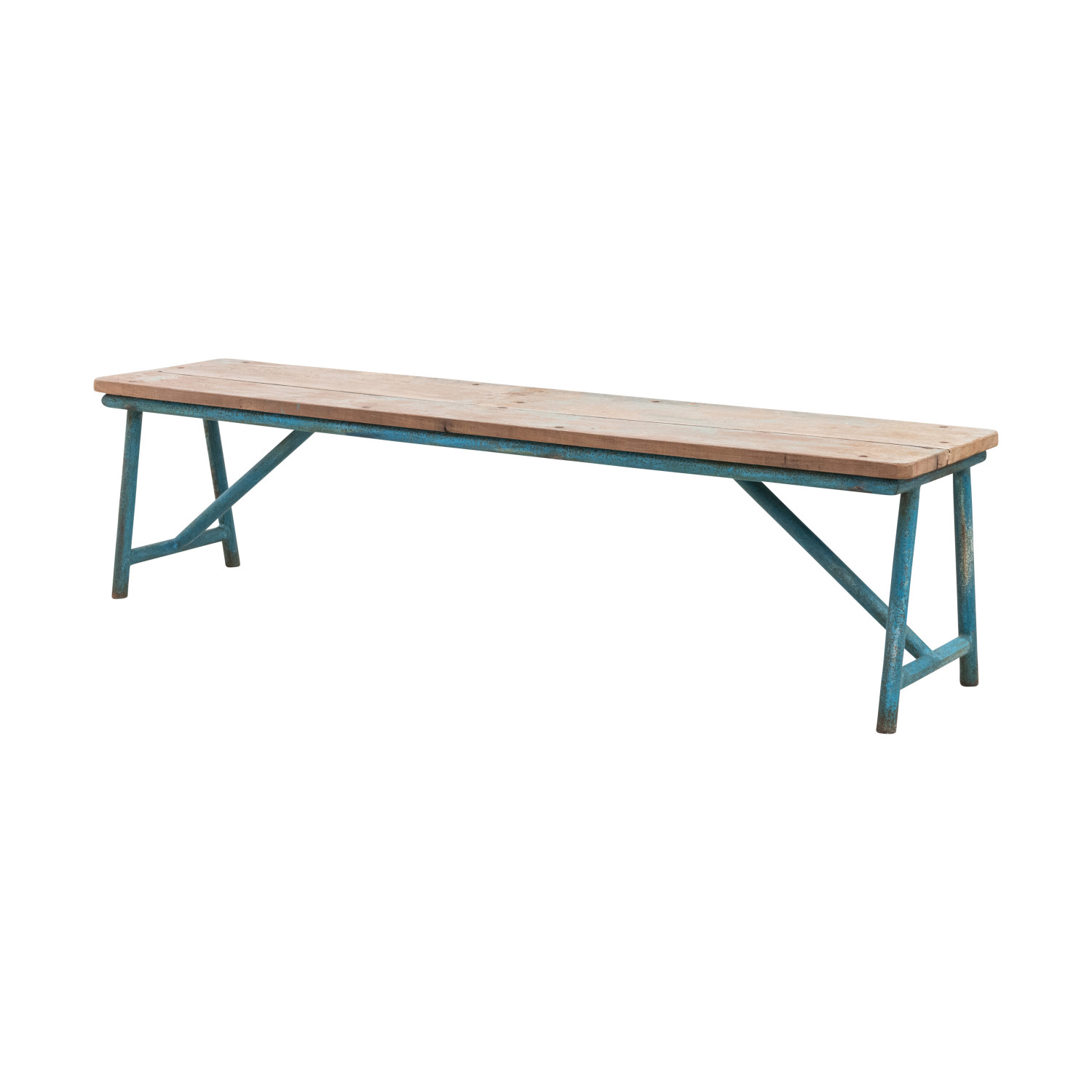 Reclaimed Wood & Metal Bench, Natural & Distressed Blue (Each One Will Vary)