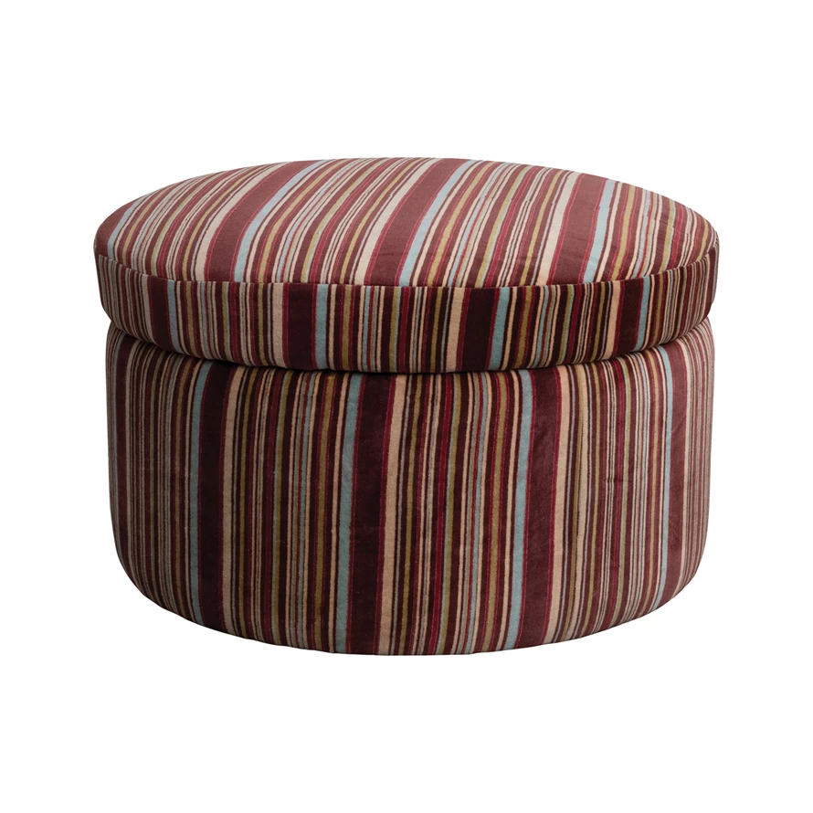 Catalog Name: 16-1/2" Round x 19"H Cotton Velvet Upholstered Striped Ottoman w/ Lined Storage, Multi Color